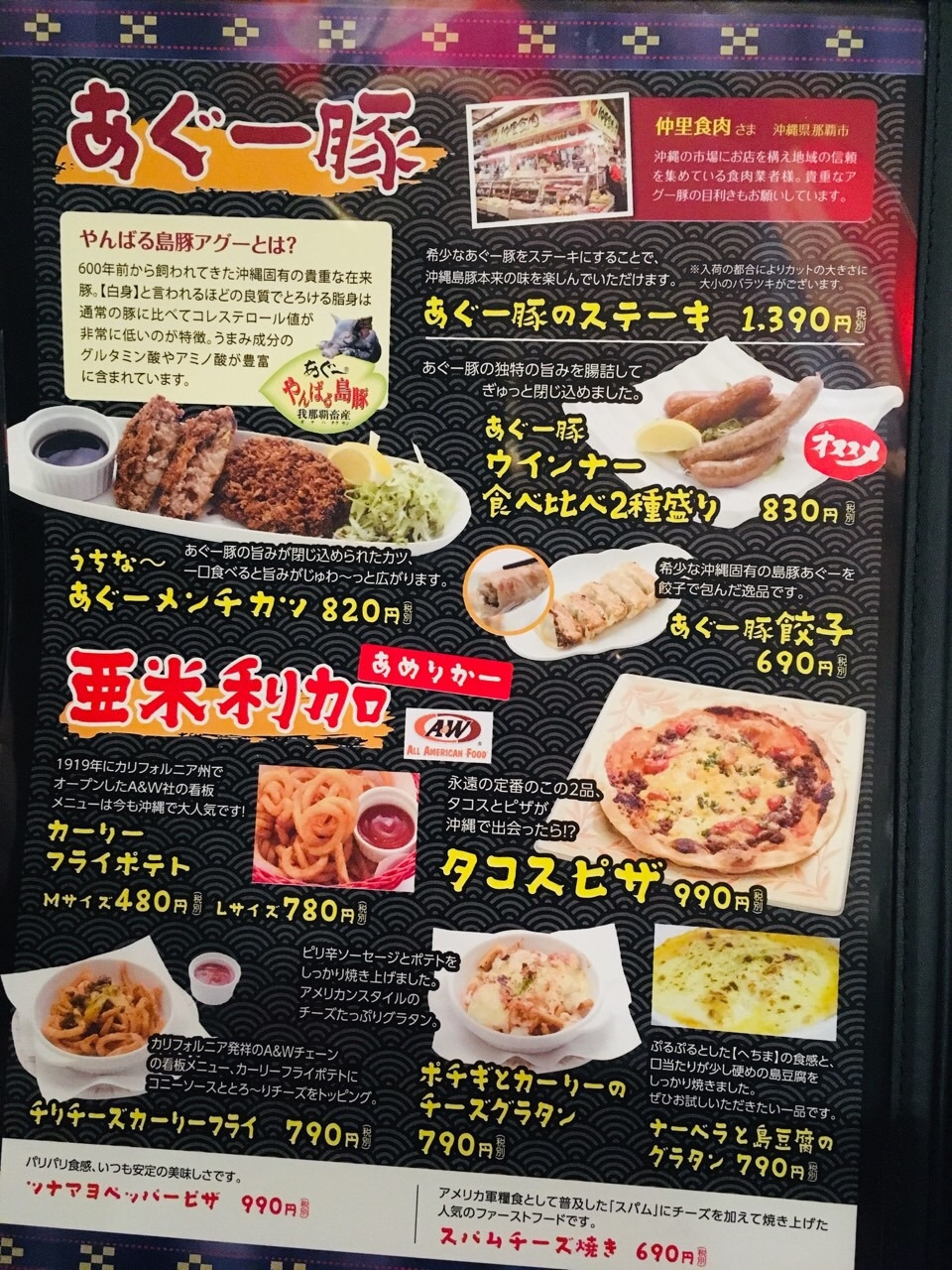 오키나와는 전쟁 후 미국의 지배를 받기도 했고, 일본에 반환된 이후에도 미군이 계속해서 주둔하였습니다. 그 결과, 일본의 다른 지역에 비해 스팸햄과 같은 미국식 햄의 소비가 자연스러운 곳이 오키나와입니다. 그래서 그런지 오키나와의 요리에는 이런 햄이 재료가 되고, 일본 고유의 음식 양식이 합쳐져서 오키나와만의 새로운 요리들이 탄생한 것 같았습니다.