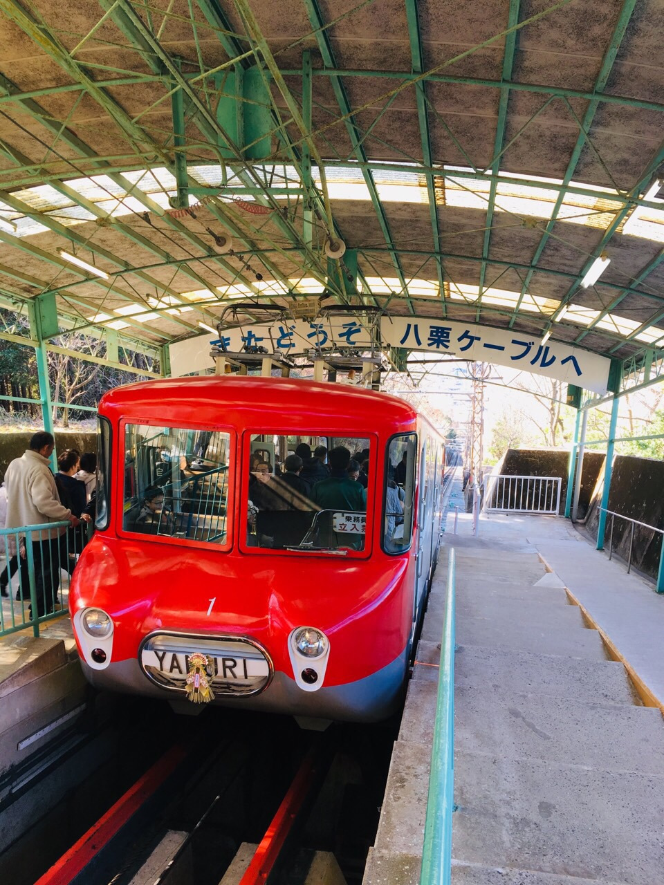 산의 윗부분에 위치한 야쿠리지를 가려면 산을 올라야 하는데 야쿠리지로 가는 등산로는 가파르고 거리도 결코 가깝지 않습니다. 그래서 이곳을 방문하는 대부분의 사람들은 케이블카를 이용하는데 우리 가족도 이곳에 방문할 때면 여기의 케이블카인 '야쿠리 케이블'을 이용합니다.