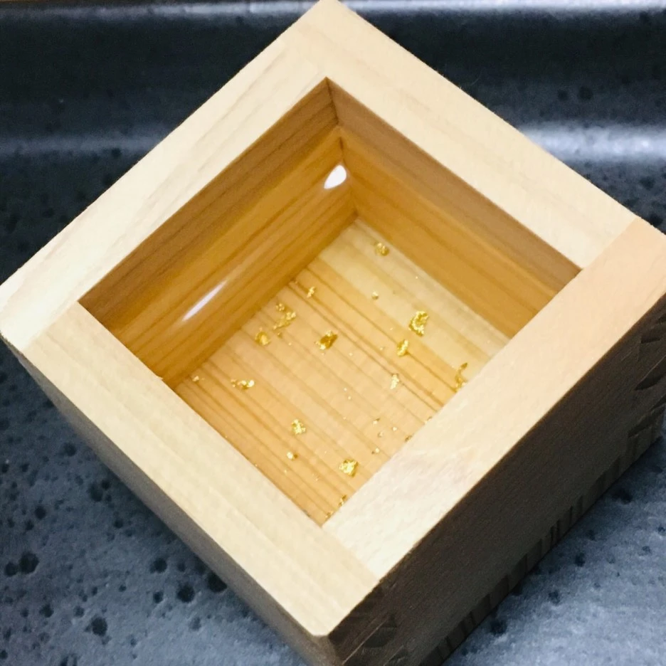 오세치요리를 먹으며, 신전(神前)에 올리는 술인 오미키(おみき)도 가족들과 나누어 먹었습니다. 일본에서 오미키를 마신다는 것은 신에게 바친 술을 마심으로써 신의 좋은 기운이 몸 안으로 들어온다는 의미를 가지고 있는데 그 의미를 새기며, 금박이 포함된 오미키를 마수(枡)에 담아 한 잔씩 마셨습니다.