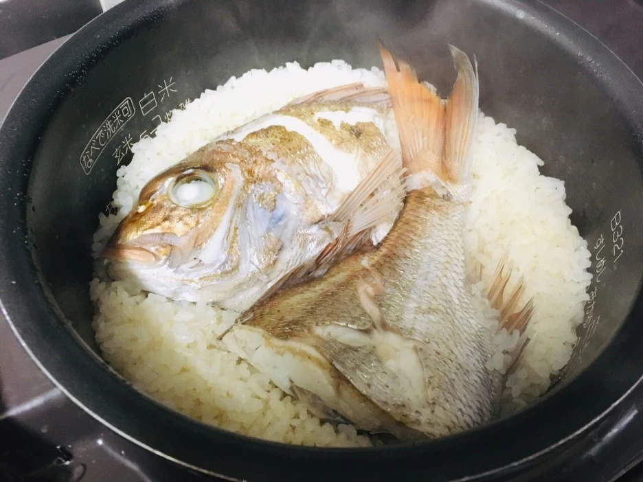 오세치요리를 반찬 삼아 장모님께서 해주신 도미밥을 먹었습니다. 작년 정월에 먹었던 도미밥의 추억을 다시 느끼고 싶어 하는 사위를 위해 장모님께서는 살이 통통하게 오른 도미 한 마리를 통째로 넣은 맛있는 밥을 지어주셨습니다.