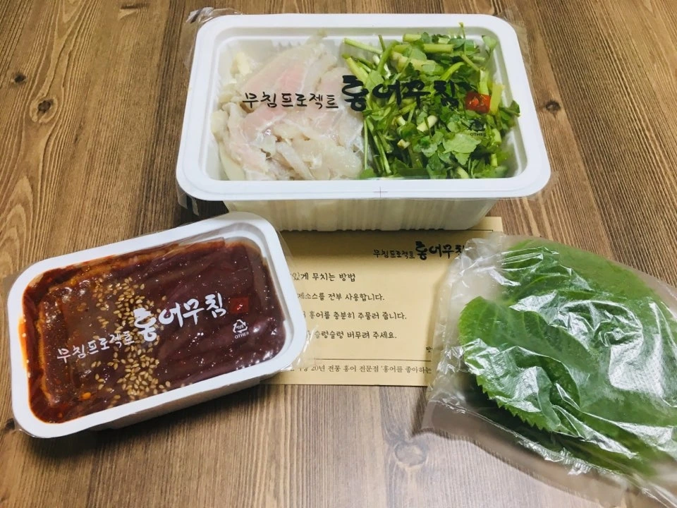 또한, 홍어무침이 먹고 싶다는 아내의 요청으로 "무침 프로젝트 홍어무침"이라는 독특한 간판을 걸고 있는 가게에서 홍어무침을 구입했다. 2~3인분인 12,000원짜리로 구입한 후 집에서 무쳐 보았는데 적당히 삭힌 홍어에 충분한 야채가 포함된 홍어무침은 입맛은 돋아주면서도 자극적이지 않게 맛있었다.