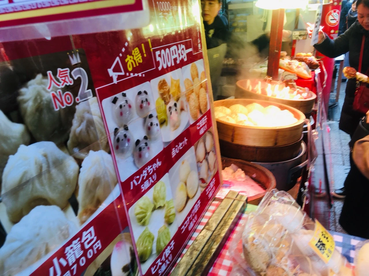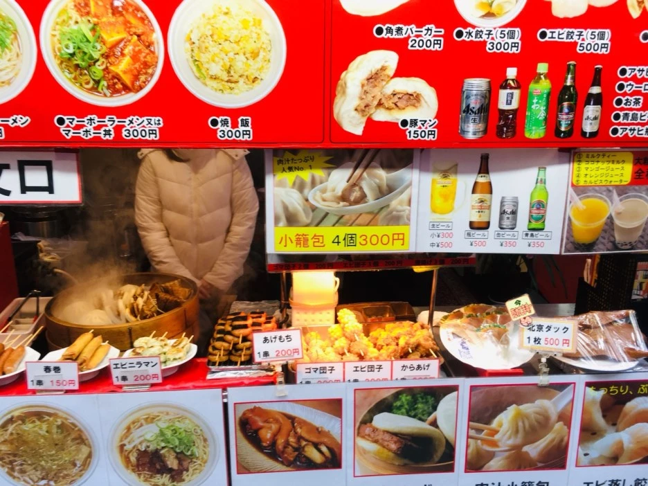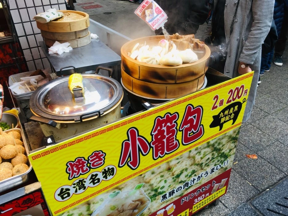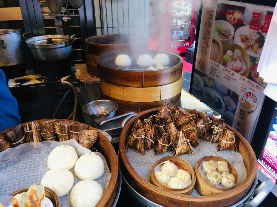 일본 차이나타운의 음식들에는 특히 만두류가 많았습니다. 다진 고기를 만두소로 한 만두도 있었지만 간장 베이스 양념에 조린 돼지고기를 통으로 넣은 만두빵(トンボーローバーガー)도 있었습니다. 그리고 베이징 오리를 판매하는 가게들을 흔하게 볼 수 있었는데 베이징 오리와 채를 썬 각종 채소를 한데 묶어 크레페(北京ダッククレープ)처럼 판매하였습니다.
