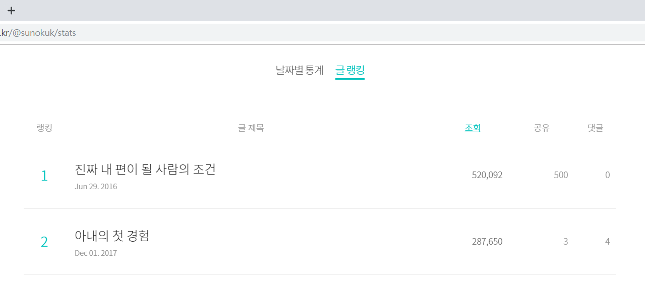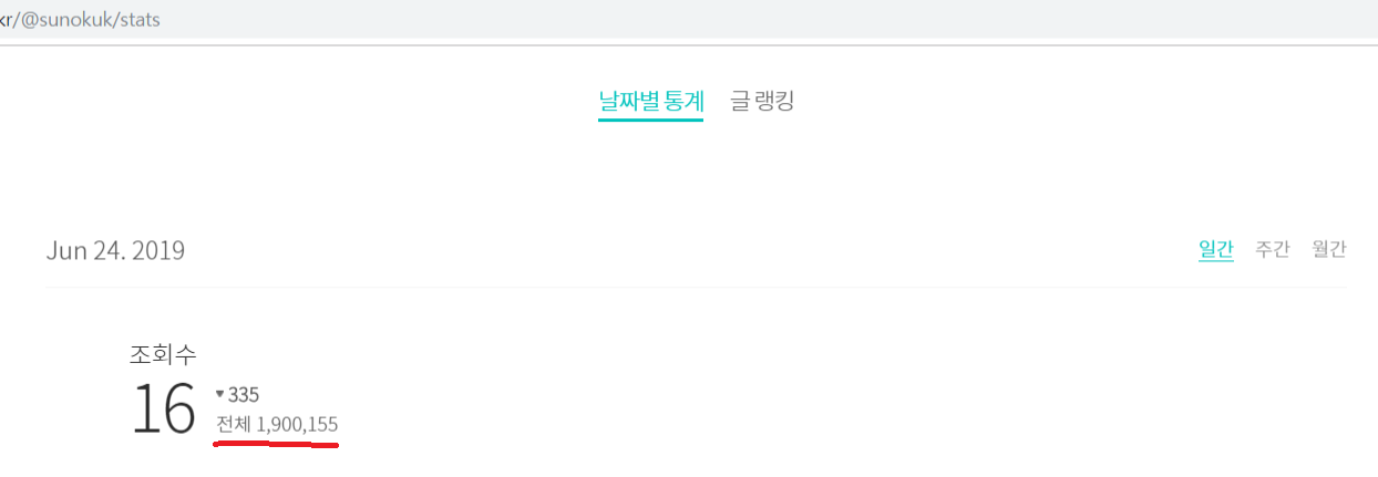 190만 건을 찍은 전체 조회수 그리고 영광의 최고 조회수 글을 바라보며