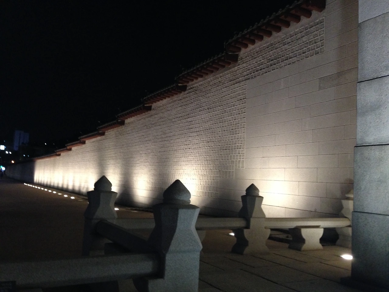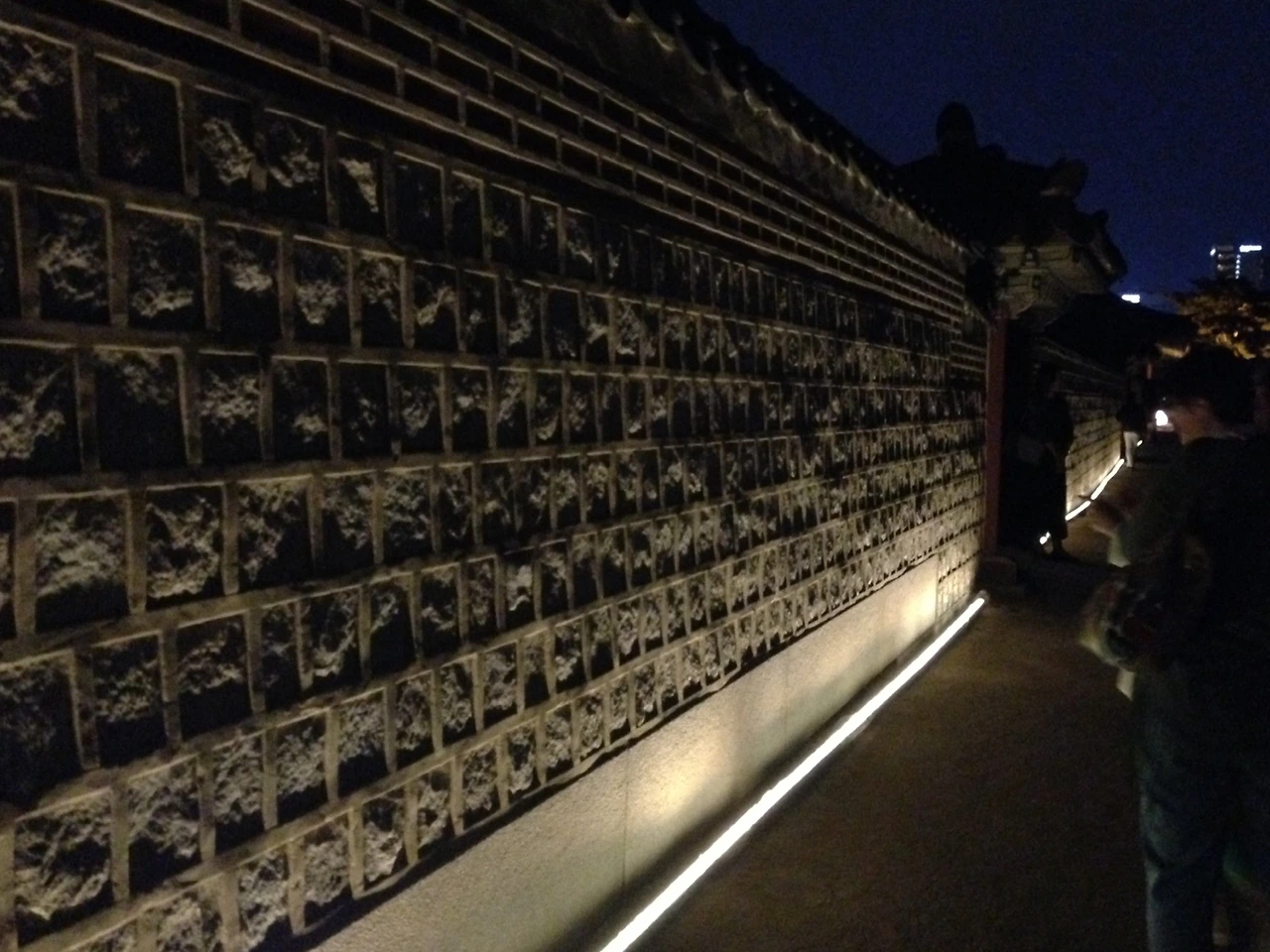 쭉 펼쳐진 담벼락이 어둠 속 고궁의 아름다움에 흠뻑 취해 행복해하는 내 마음에 마침표를 찍어준다.