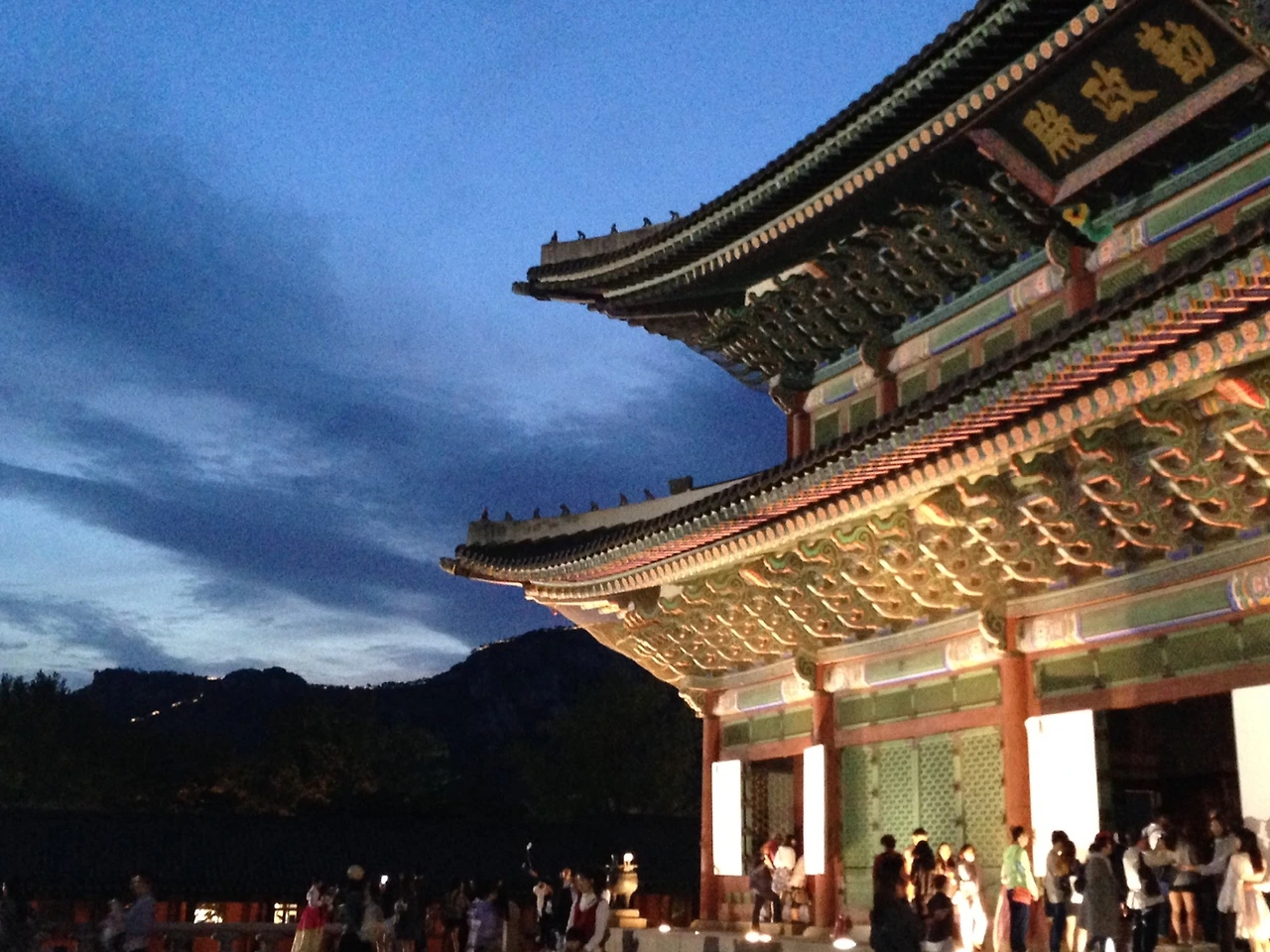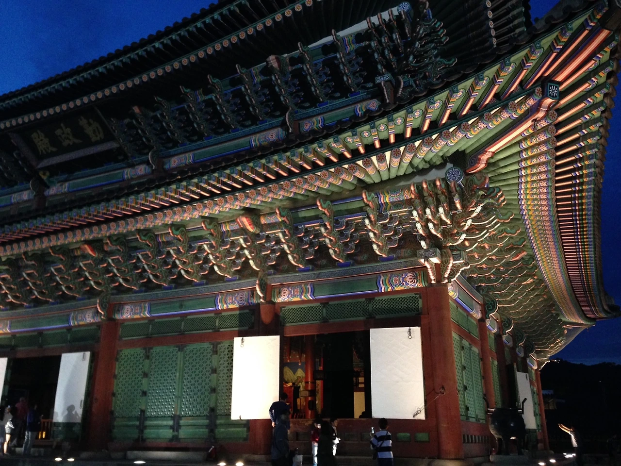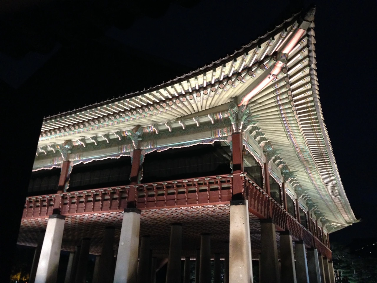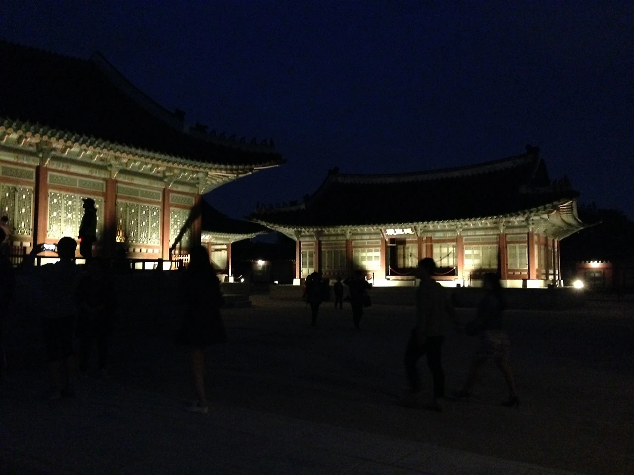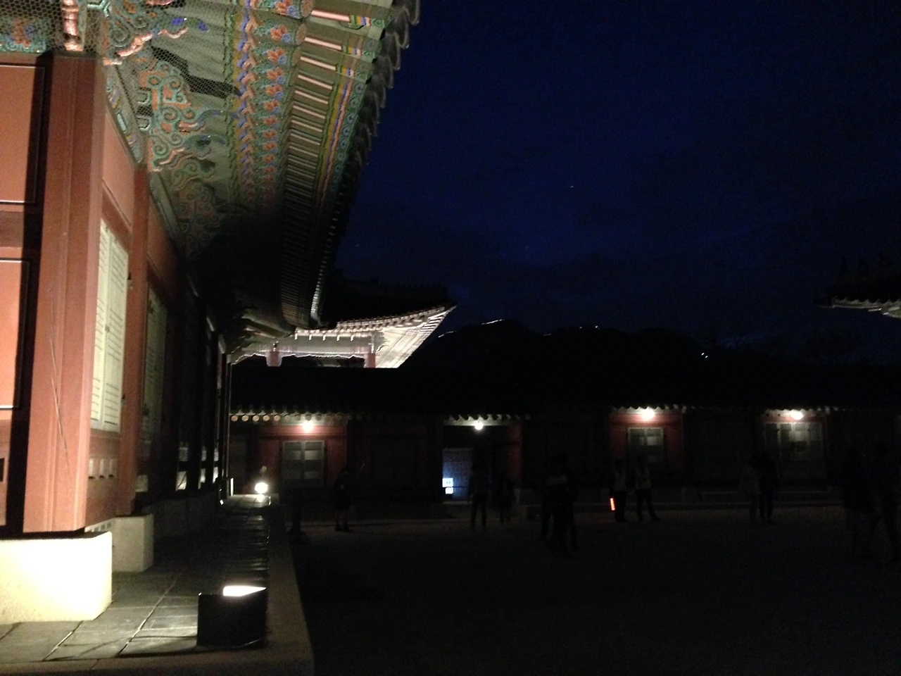 어둠이 짙게 드리우니, 조명에 비친 고궁의 모습은 더욱 선명해진다.