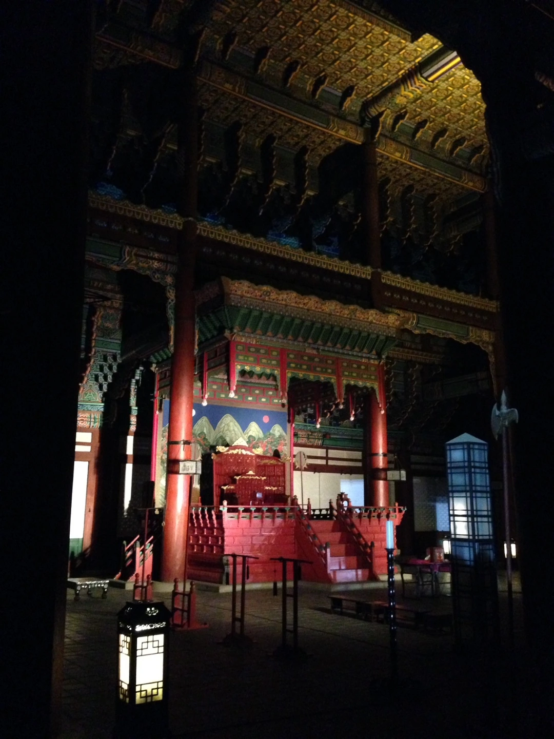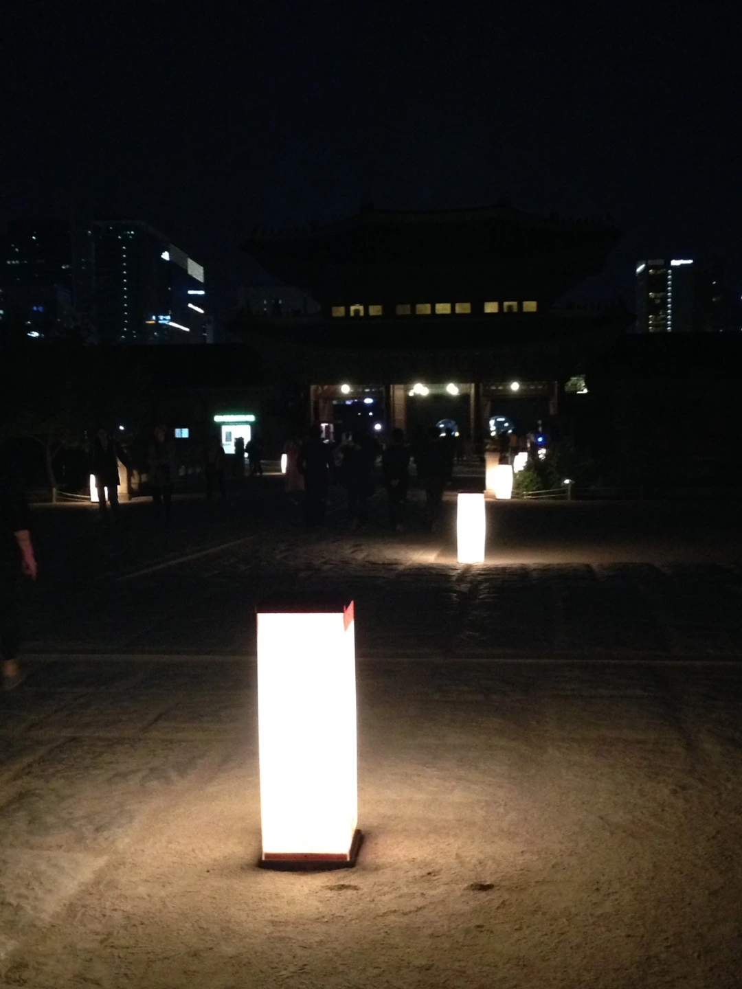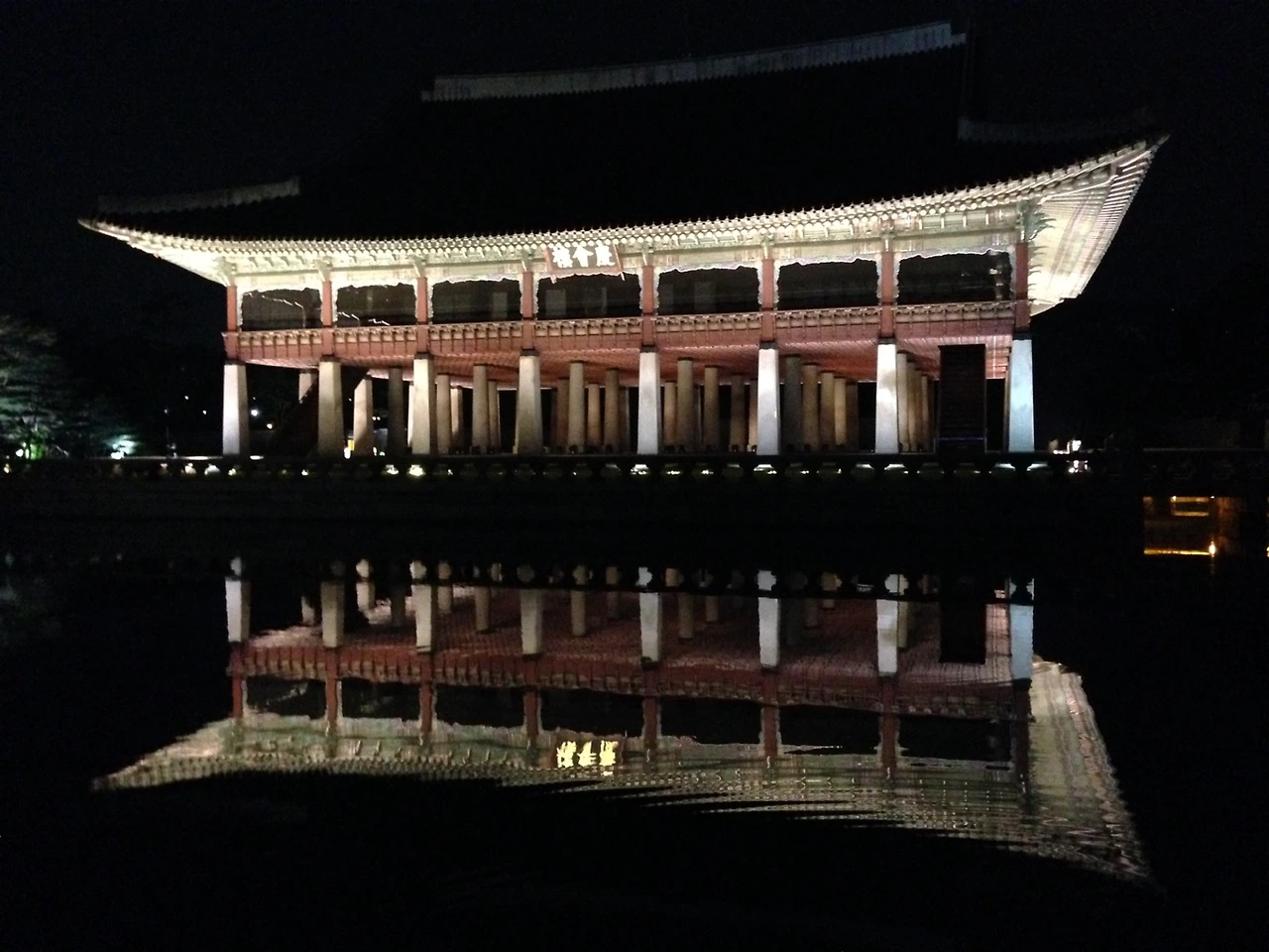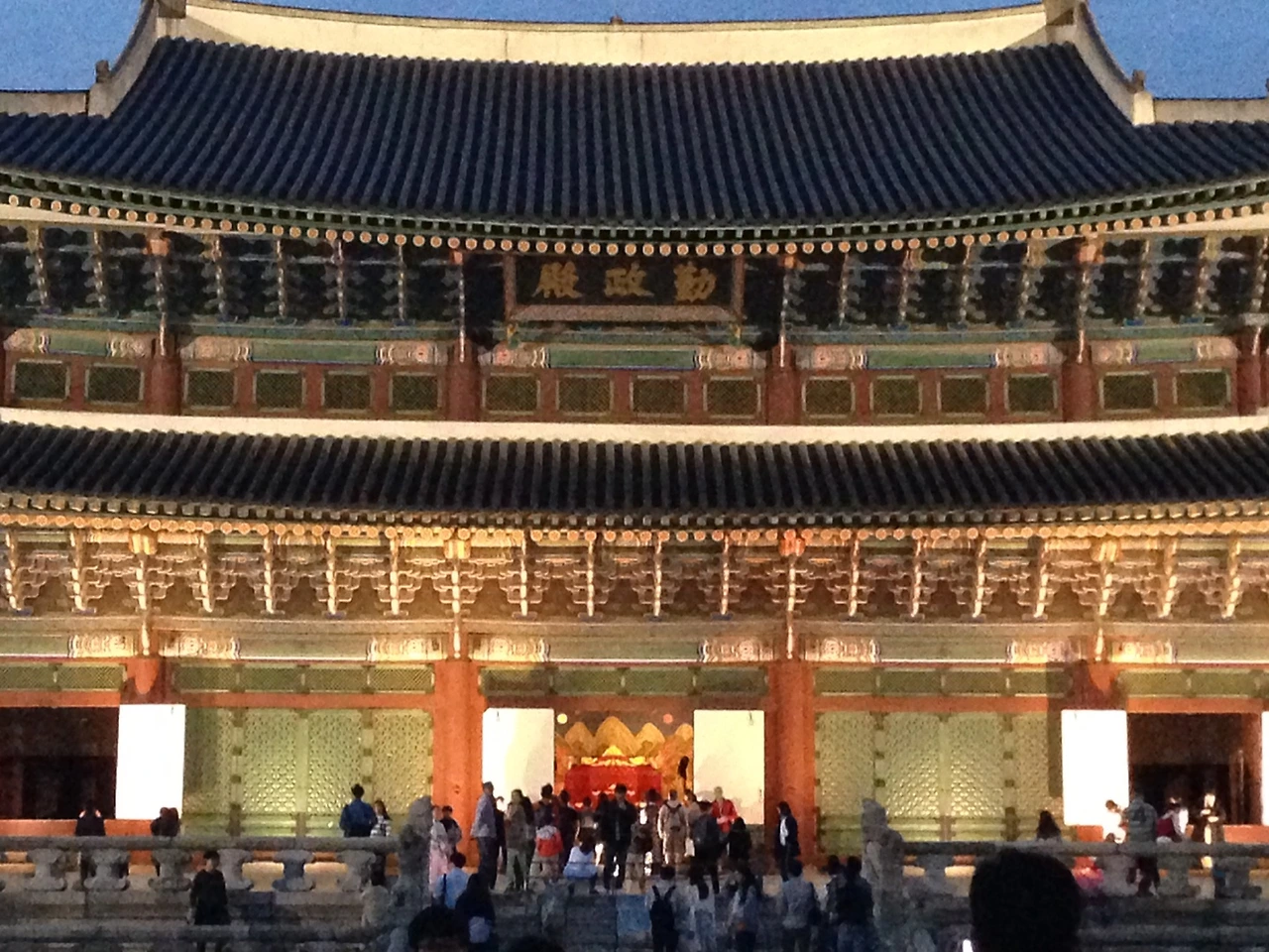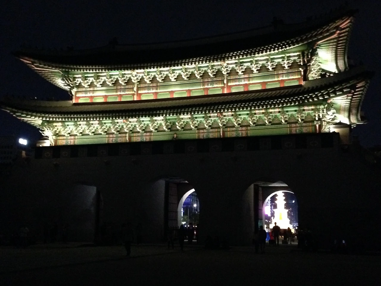 어둠이 짙게 드리우니, 조명에 비친 고궁의 모습은 더욱 선명해진다.