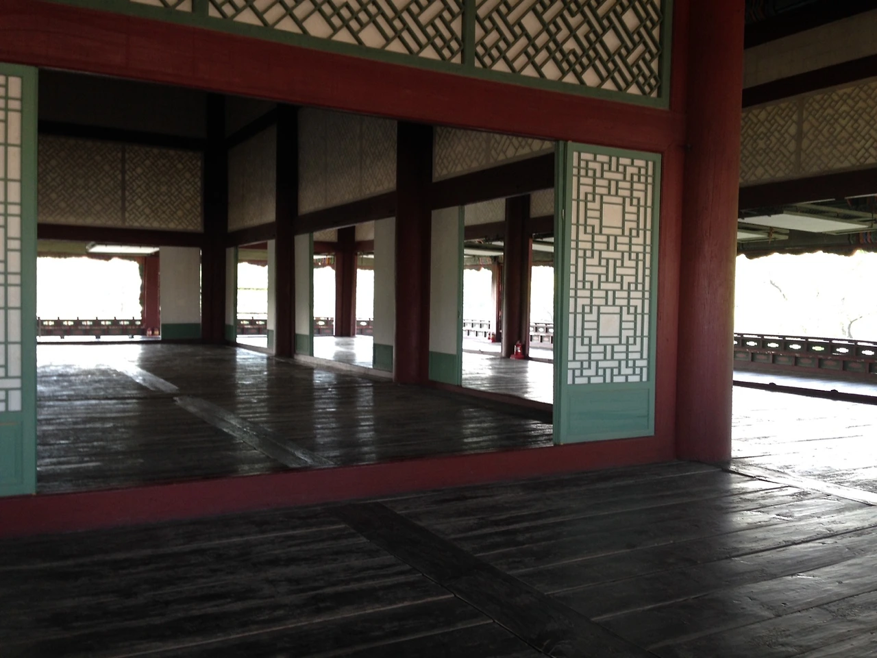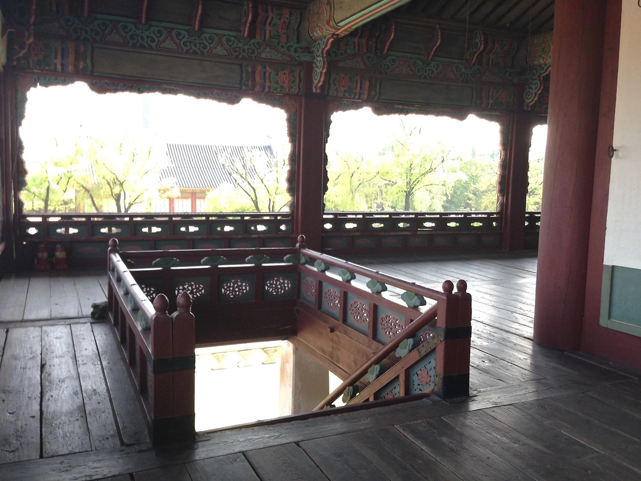 경회루의 문들은 분합문이다. 분합문은 열어서 접어들어 올릴 수 있는 문으로 공간 활용에 유리하고, 통풍이 잘 되도록 한다. 2층은 사방으로 탁 트여서 주변의 풍경을 감상하기에 딱 좋게 되어 있었다.
