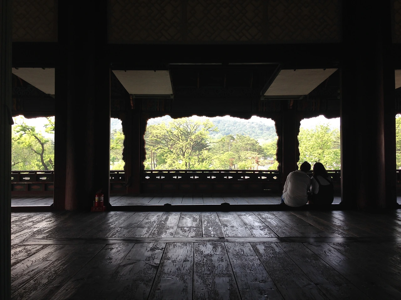 약 20분간의 해설이 끝났다. 그리고 20분간의 자유관람시간이 주어졌다. 나는 앉은자리에서 그대로 바깥 풍경을 감상했다. 왕의 자리에 앉아서 바라본 눈앞의 풍경화와 그 공간이 제공하는 시원함과 편안함은 나를 꽉 붙잡아 놓고, 움직이지 못하도록 했다.
