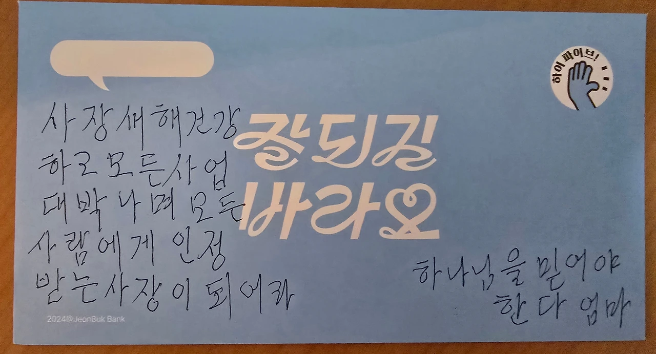 언제나처럼 어머니는 손으로 꾹꾹 눌러쓴 덕담이 담긴 세뱃돈 봉투를 준다.