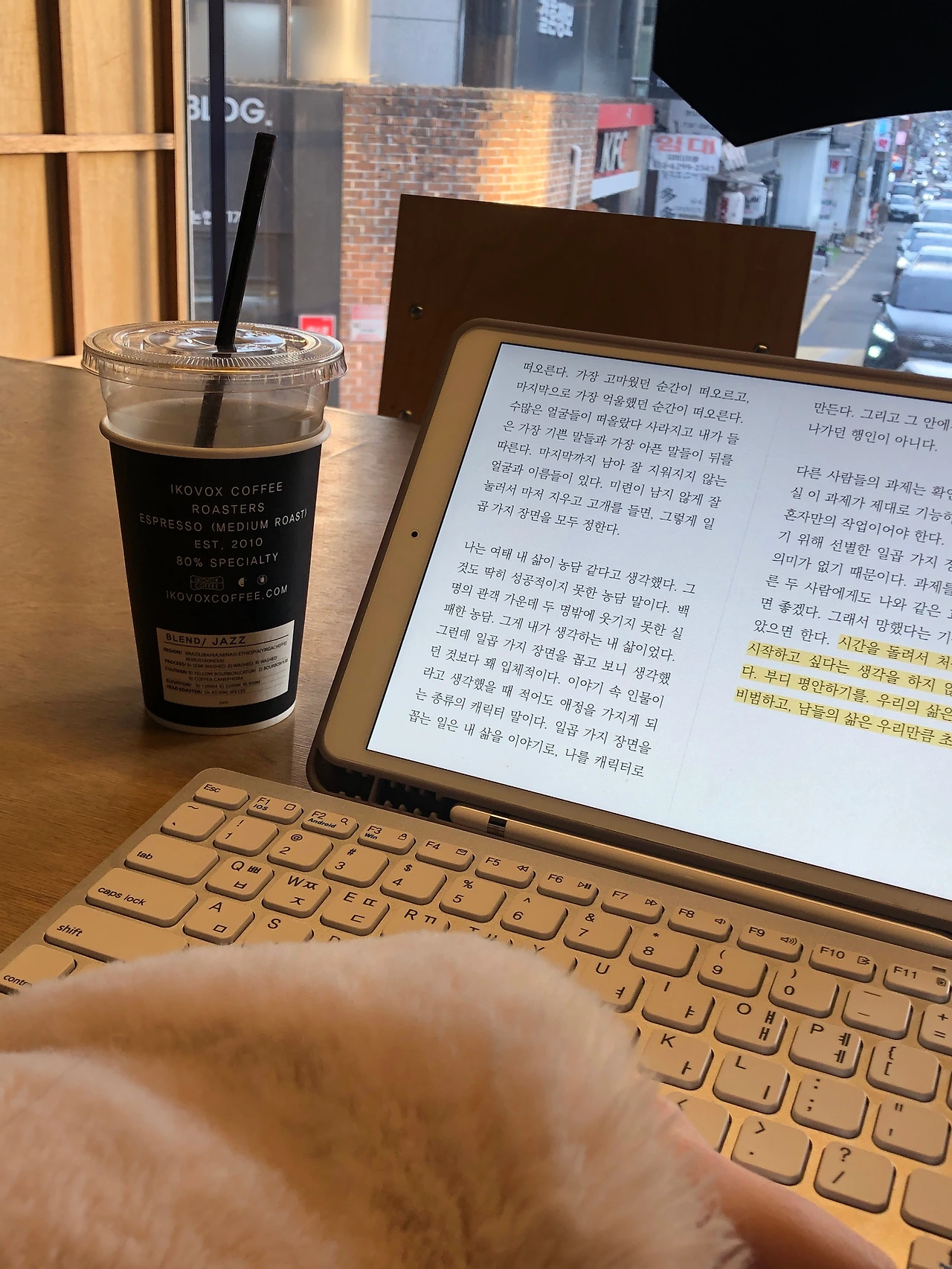 그렇지만 가는 날이 장날이라고 했던가. 어제는 내 기준으로 올 겨울 역대급 추운 날이었다. 정확히 몇 도인 지는 몰라도 상트페테르부르크의 겨울만큼 추웠다. 하필이면 기분을 내겠다고 또 춥게 입고 갔는데 가고 싶었던 카페는 닫아서 KBS 한국어 능력시험 책이랑 아이패드가 든 무거운 가방을 들고 20분을 뻘뻘거리며 돌아다녔다. 겨우 간 카페는 너무 넓은 탓에 난방이 제대로 되지 않았고, 설상가상으로 충전기도 집에 놓고 와서 핸드폰 없이 하루를 보냈다. (물론 아이패드가 있어서 괜찮았다. 쓰다 보니 오늘 글은 티엠아이 파티다).
