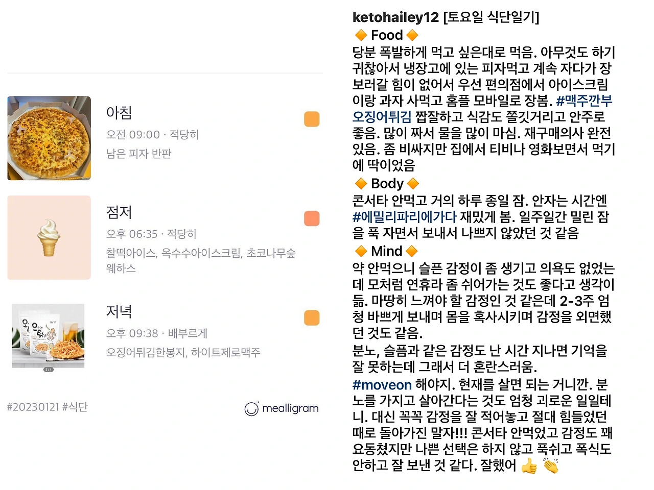 처음부터 감정을 쓰려고 하지 않아도 됩니다. 힘든 감정을 일부러 끄집어내려고 하지 않아도 됩니다. 관심이 있는 아무 주제에 대해서 써나갑니다. 저는 하루하루 먹은 것과 몸 상태, 그리고 느껴지는 감정을 기록했습니다.