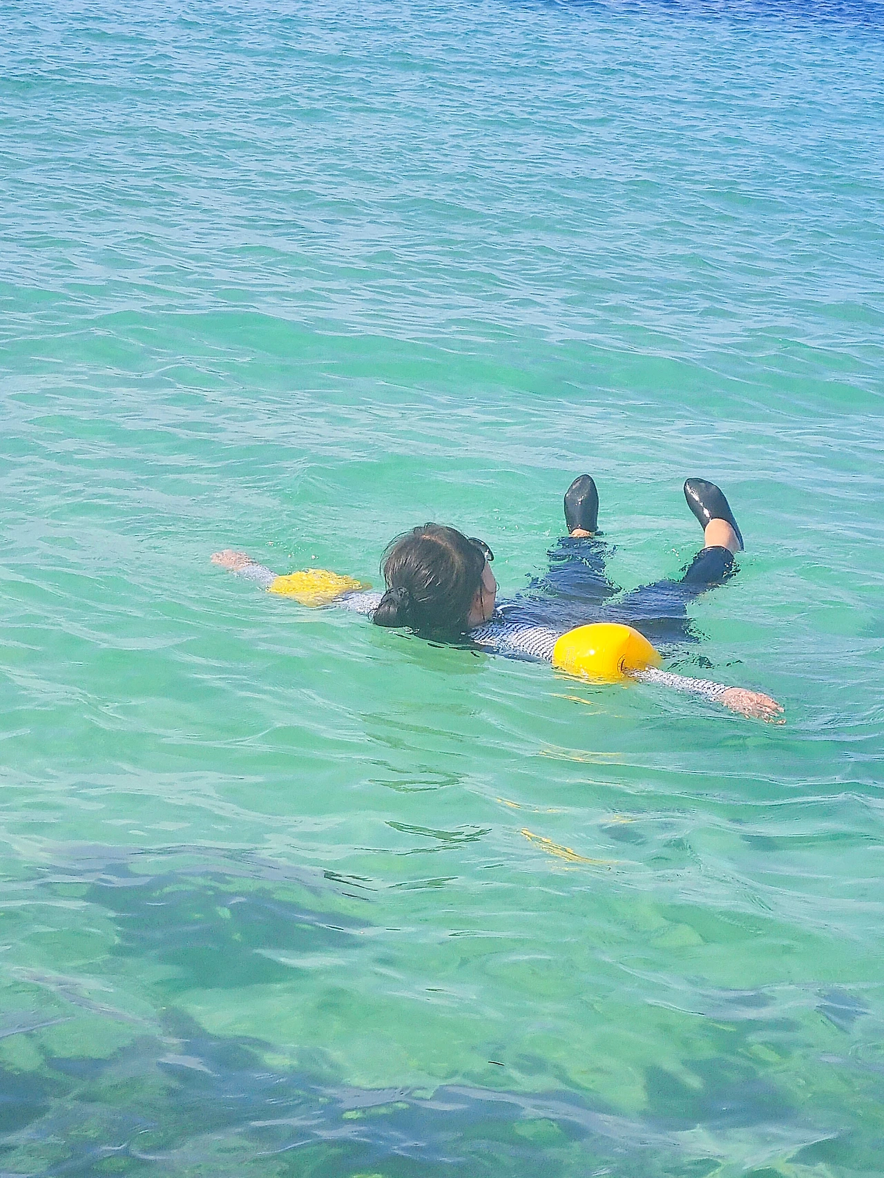 바다에 드러누운 귀여운 엄마