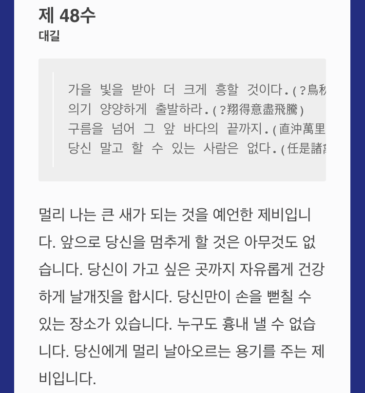 룽산사에 갔는데 안 하면 섭섭한 점괘를 봤어요. 점괘 결과는 48번, 대길이었어요. 맹신하는 건 아니지만 좋은 결과가 나오니 기분이 좋았어요. 기다리고 있는 일에 대한 결과가 뭔가 잘 풀릴 것만 같은 그런 느낌 탓에요.