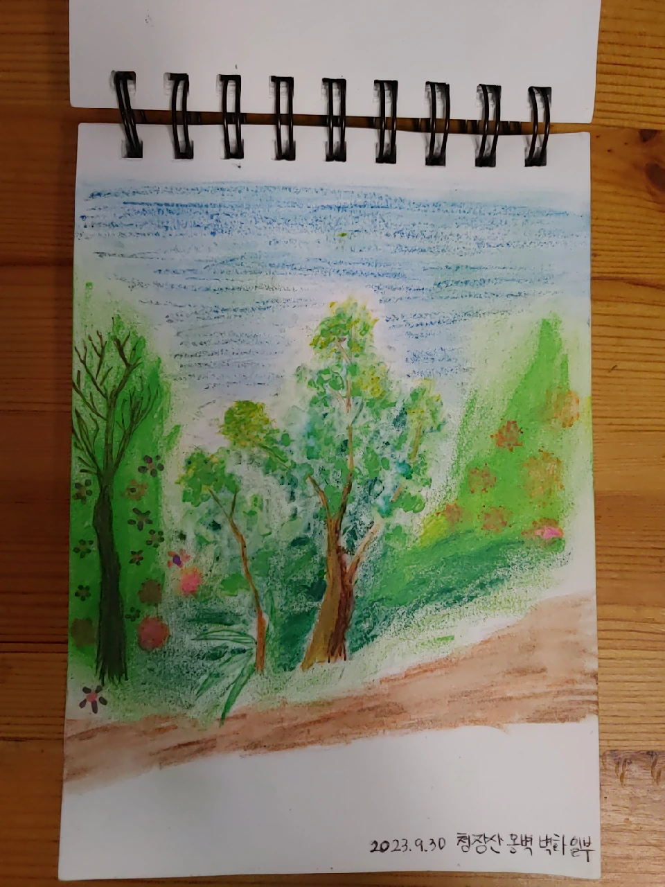청장산 숲길에 있는 벽화 찍어둔 사진을 보고 그렸다. 나무가 내 마음에 들게 그려진 첫 그림이다. 그림 양쪽 가장자리는 폭망한 상태. 그래도 즐겁다.