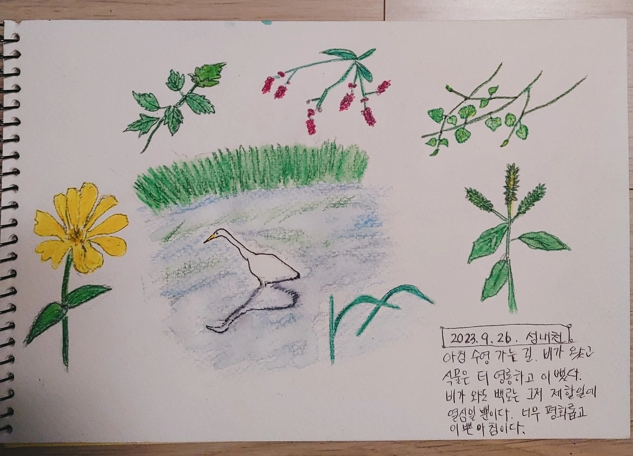 처음으로 가장 세밀하게 그려본 그림. 새는 오리가 아니고 왜가리.