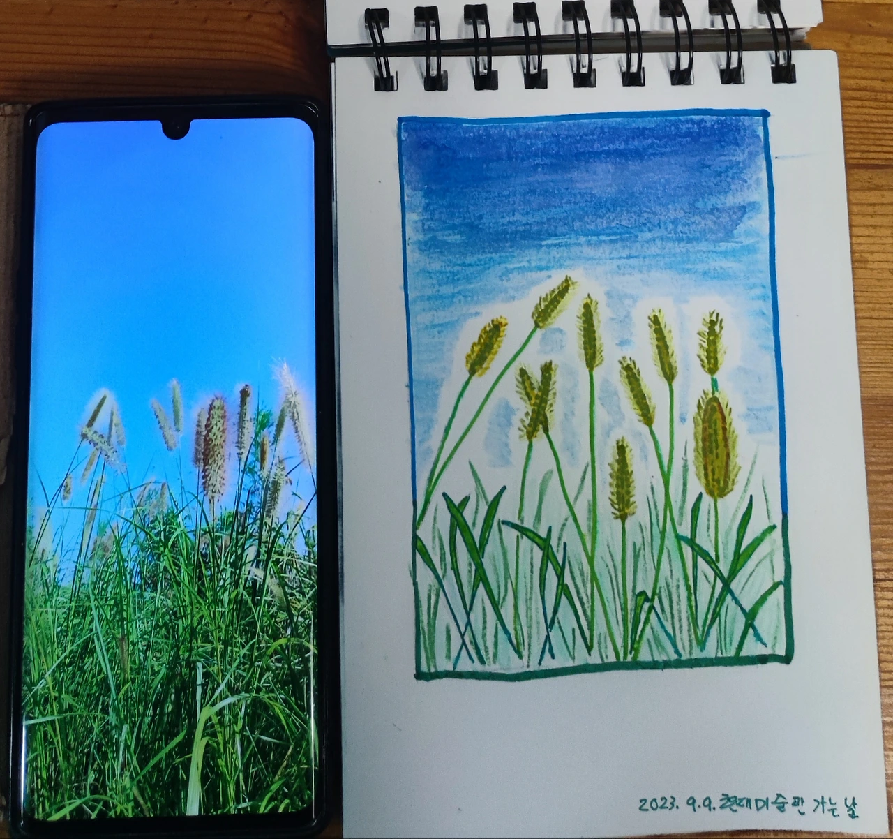 이 사진을 찍으면서 강아지풀을 과연 내가 그릴 수 있을까 했는데 나만의 방법으로 강아지풀이 그려졌다. 혼자 잘했다고 칭찬했다^♥^ .