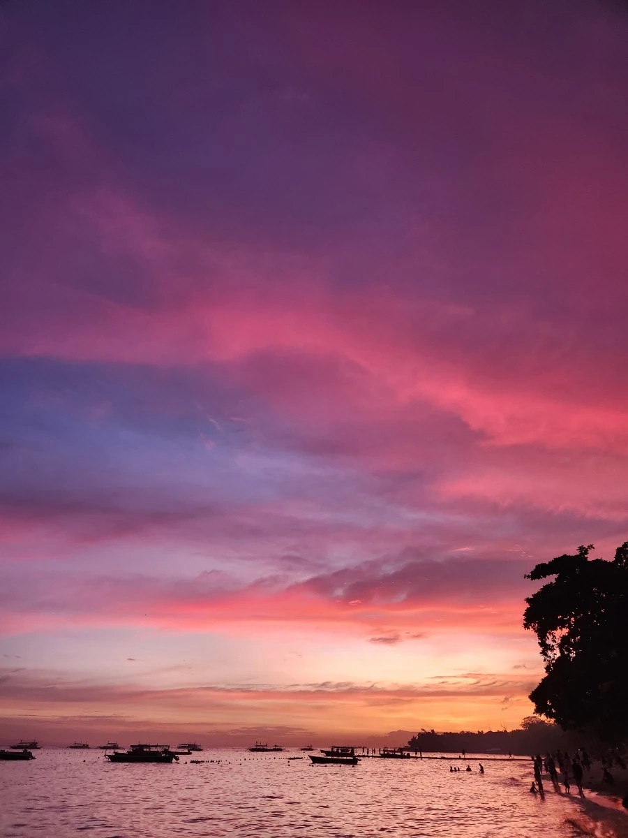 숙소에서 5분 정도 거리에 스노클링도 가능한 동네 해변이 있다. 1월 23일 알로나 해변을 다녀와서 그다음 날 툭툭이를 타고 또 노을 보러 가려는데 숙소에서 어떤 분이 근처에 노을 볼 수 있는 해변이 있으니 밥 먹고 가자고 했다. 속으로 "옴마 이거 개이득" 하며 따라갔더니 엄청난 노을이 눈앞에 쫘~~~ 악. 너무 아름다워서 도리어 현실감이 없었다. 실제로 찍은 노을 사진은 매일 50장 이상은 되는 것 같다. 난 그냥 여기서 다이빙하지 않고 매일 이 노을만 보고 가도 후회는 없을 것 같다. 미치도록 아름답고, 좋고 그리고 여기에 다이빙도 자주 한다면 매일이 천국이지 않겠나.