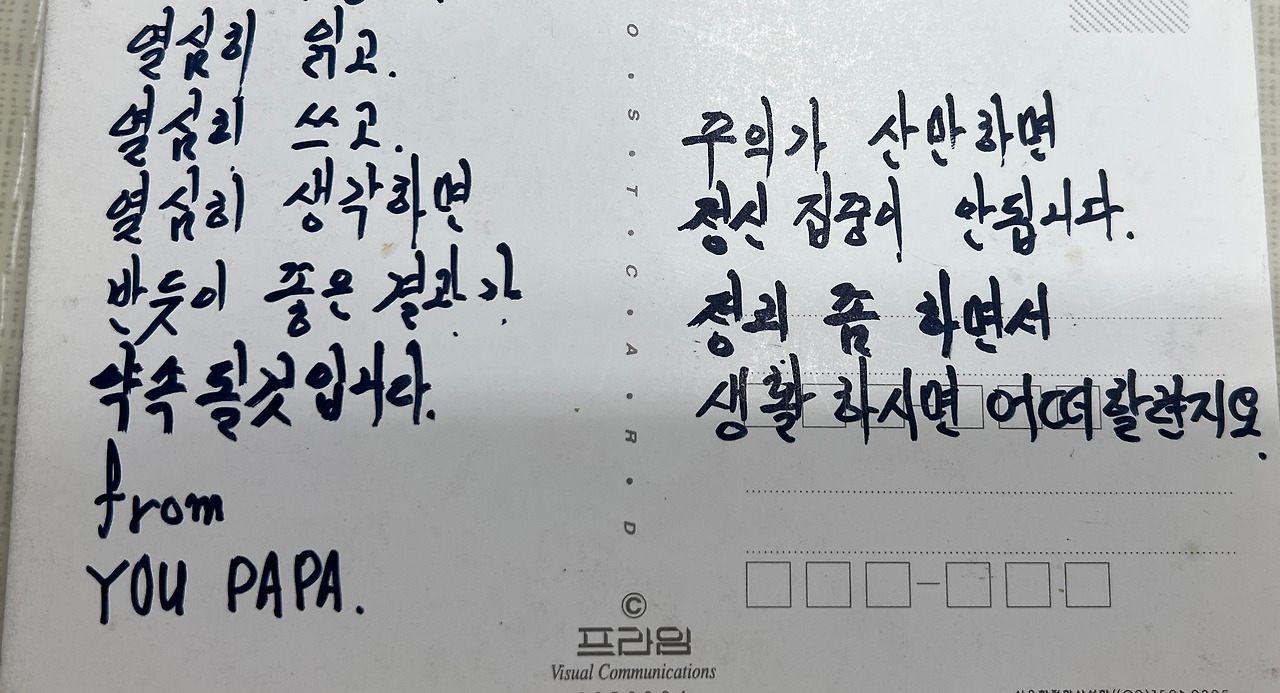 하루에 두 번 주어지는 면회시간에 아빠를 보러 간 나는 애써 밝은 목소리로 듣고 있을 거란 믿음으로 아빠를 불렀다.