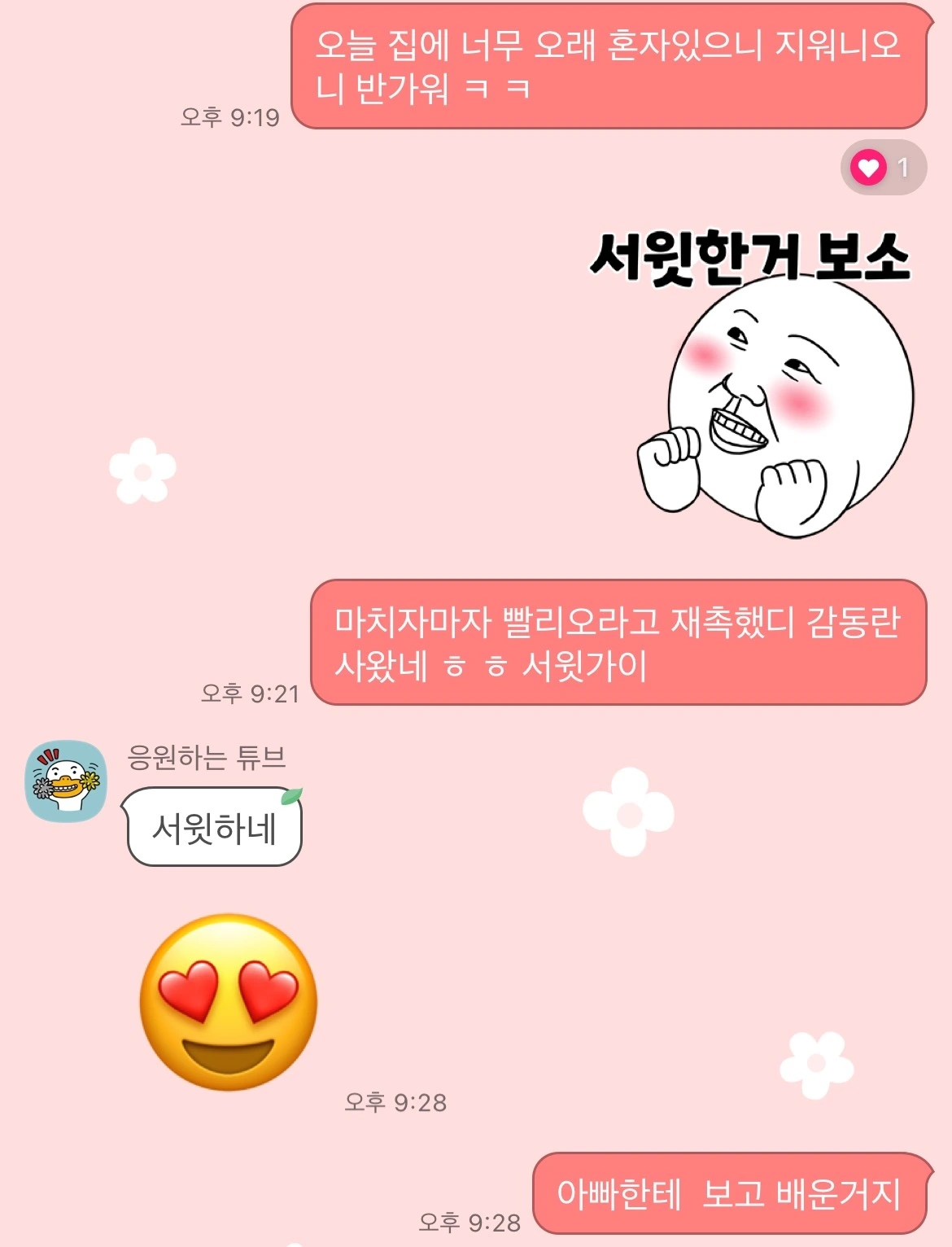 “ 학원 마쳤지? 보고 싶으니까 조심히 빨리 와”