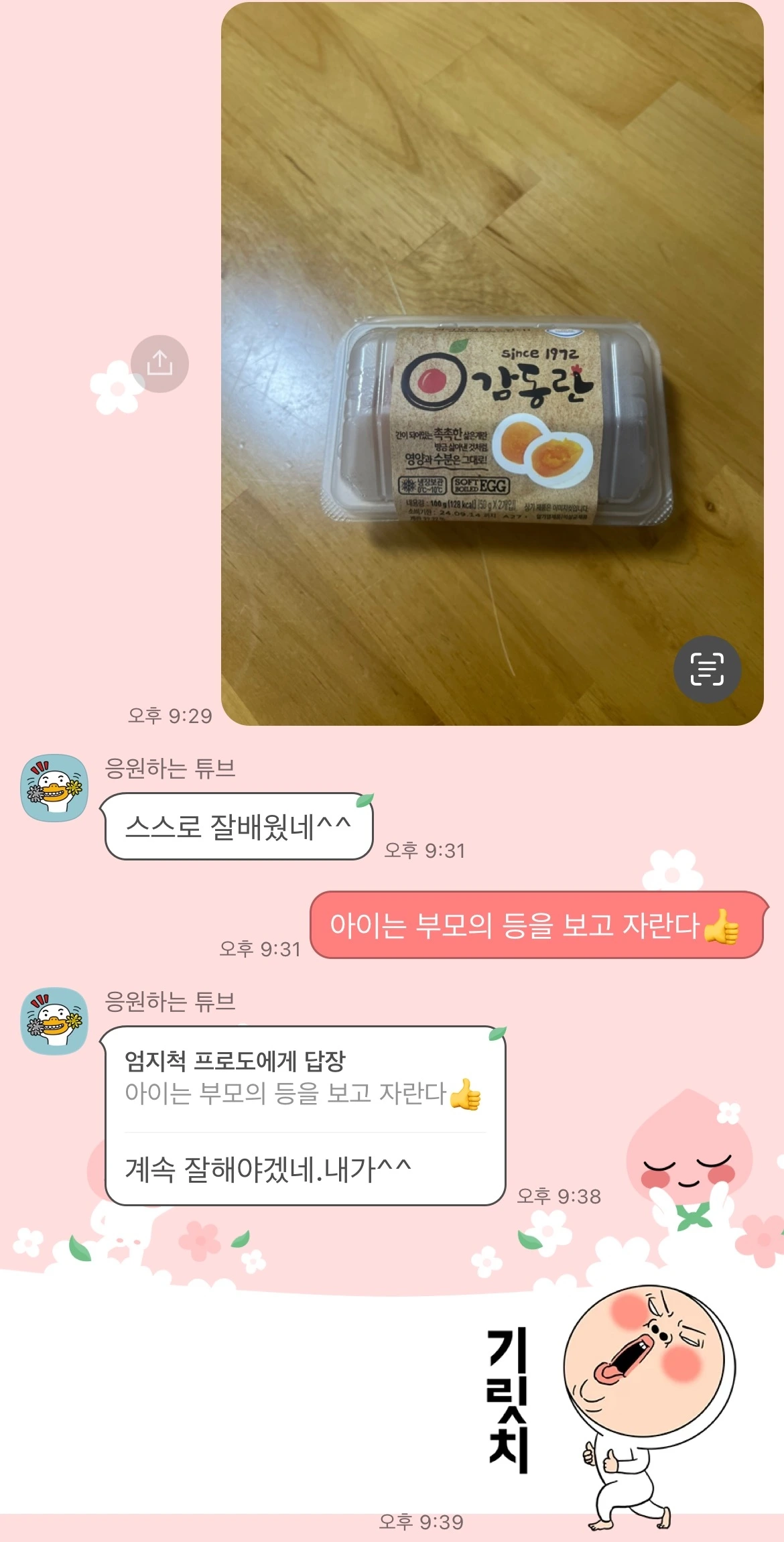 “ 지난번 훈제란 사 왔더니 감동란 더 좋다고 했잖아. 생각나서 사 왔어. 맛있게 먹어”