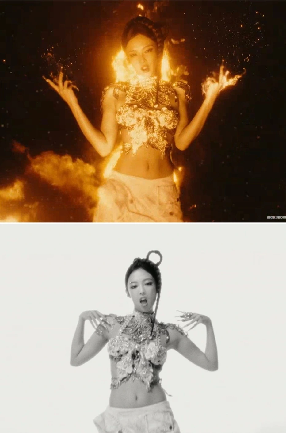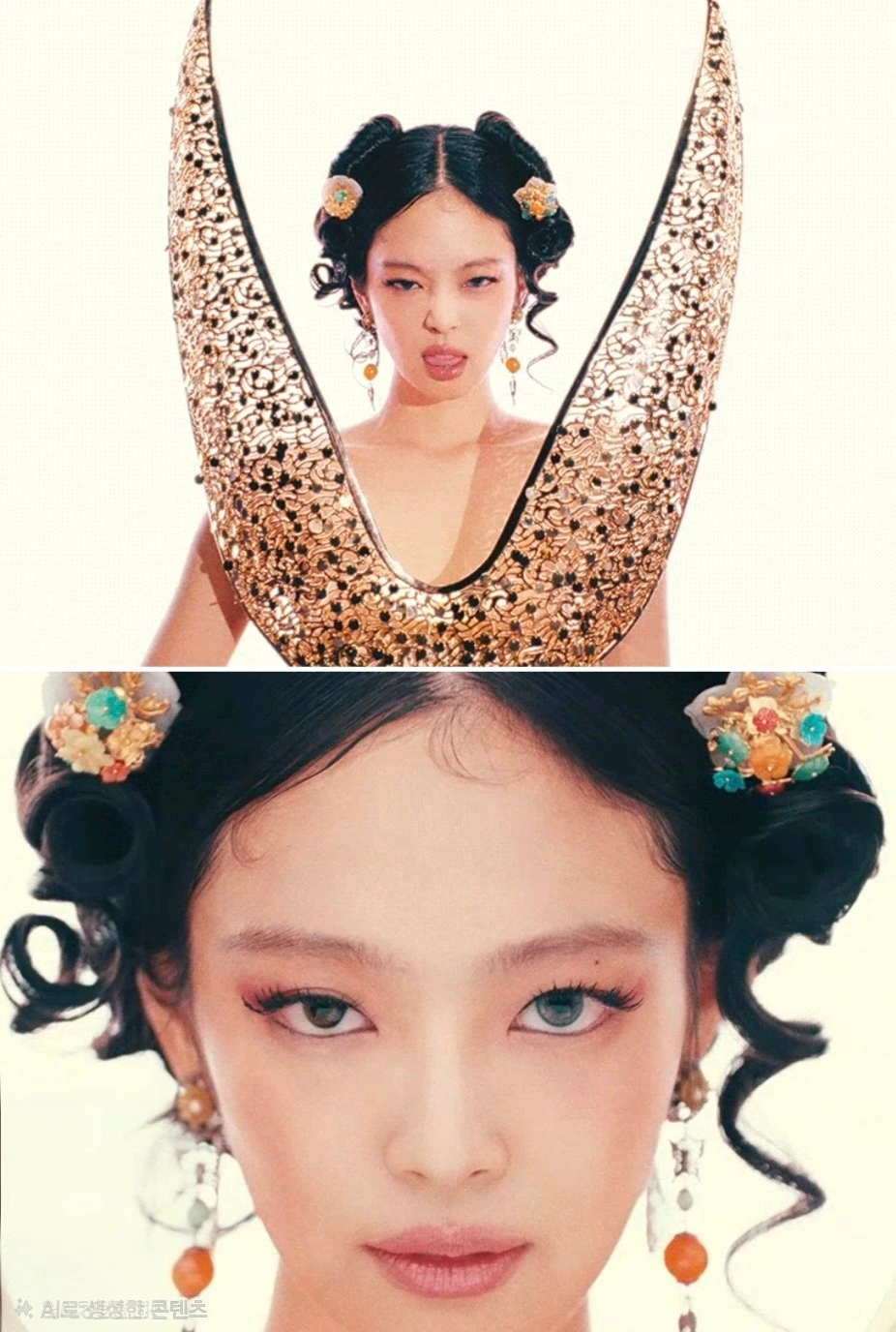 시간을 건너뛰어 2024년, 우리는 제니의 비주얼에서 선덕의 리츄얼을 다시 목격한다.
