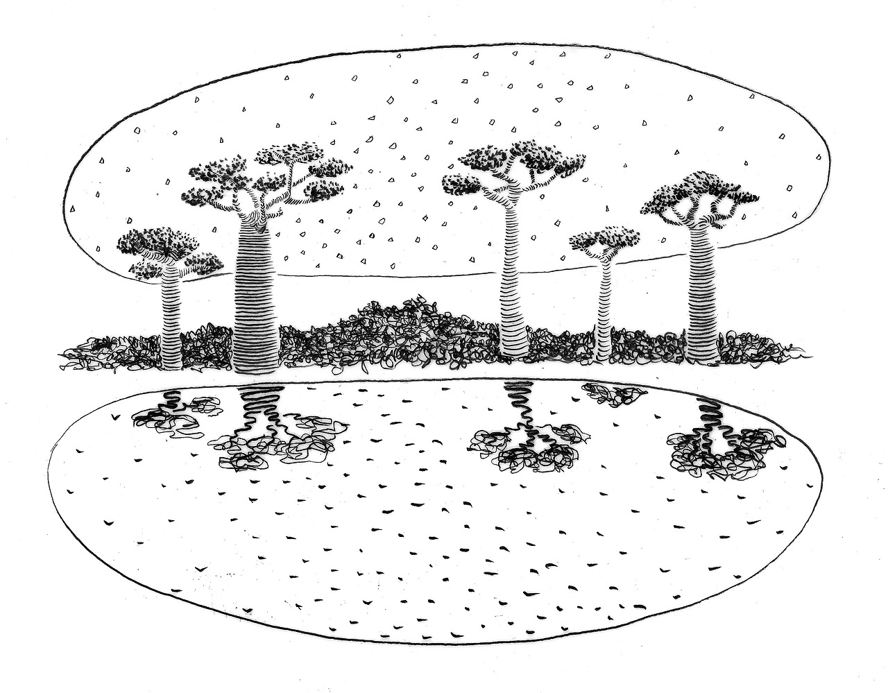 바오밥나무에 조금 가까이 가서 보고 기둥을 만져도 봤지만 감동적이지는 않았다. 외부인, 외국인이 바오밥나무 가까이에 갔기 때문에 지나가던 미케아 부족 아주머니께서 째려보고 지나가셨다. 미케아Mikea 부족에게 바오밥 숲은 삶의 터전이다. 물이 부족한 마을에서 수분을 섭취할 수 있는 바오밥 나무뿌리 바부babo를 얻을 수 있는 것만으로도 얼마나 바오밥나무가 중요한지 짐작할 수 있다. 이상한 외국인이 바오밥 가까이 가는데 경계할 수밖에. 조심할 걸.