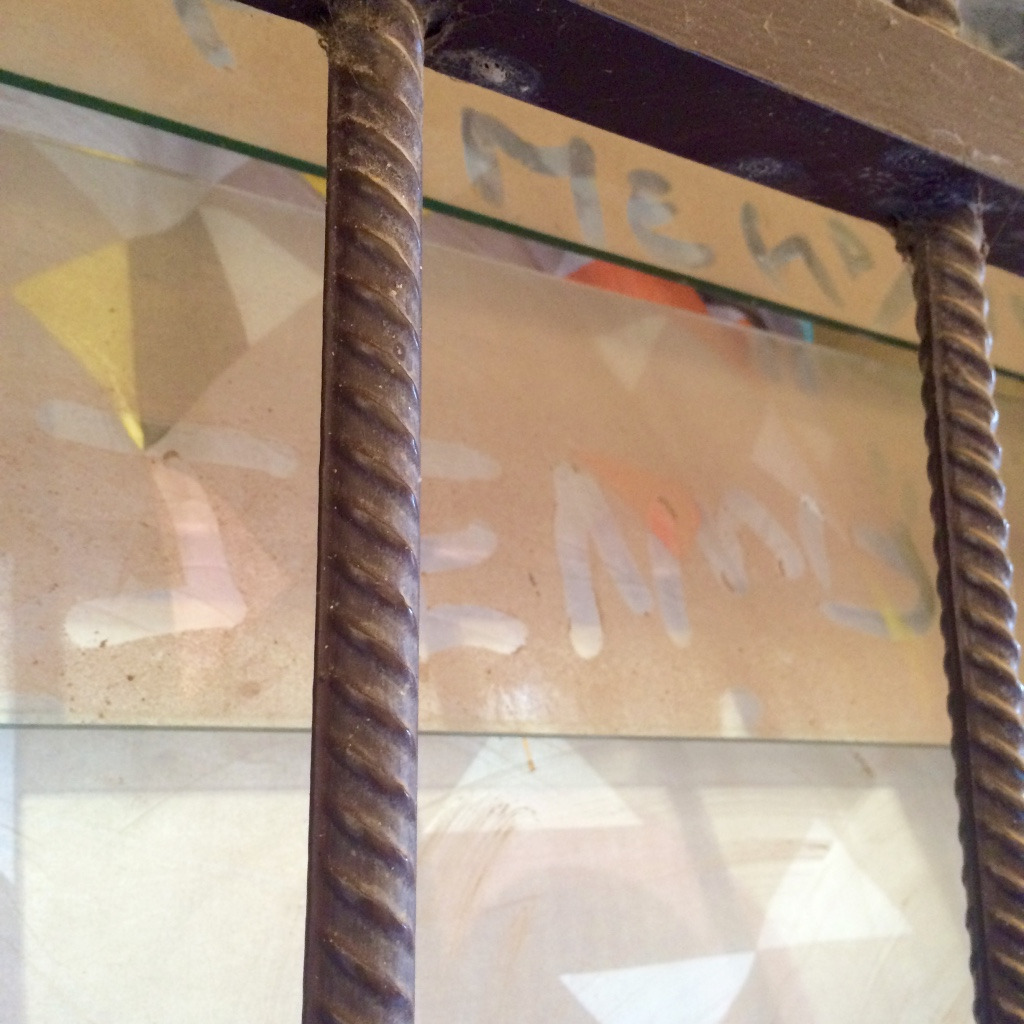 시력검사 차례가 된 아이는 테이프로 만들어둔 선 앞에 서서