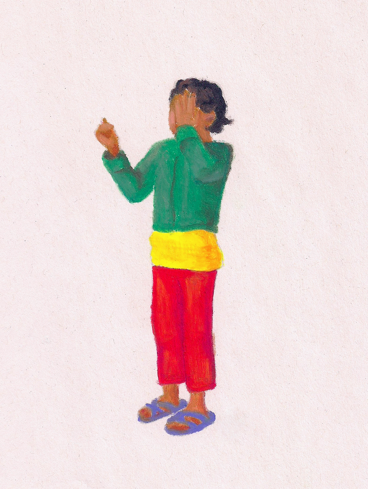 ㅌ가 어디를 향하고 있는지 손가락으로 답한다.
