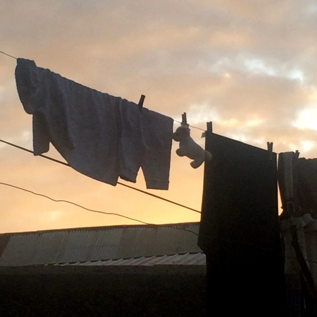 아직 덜 마른 옷과 인형이 있고