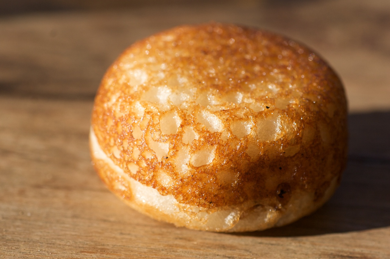 손바닥 반만 한 앙증맞은 크기로, 쌀과 밀가루를 살짝 튀겨서 만든 국민 간식이다.