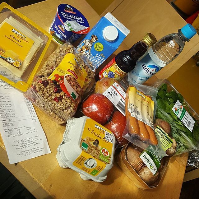 유기농 슈퍼마켓 <basic>을 발견했다. bio만 읽고 대충 때려 맞춘 건데, 육안으로도 쉬이 가늠이 되는 매장 제품들의 퀄리티가 마음에 들었다. 크기는 15분만 둘러봐도 모든 섹터를 외울 수 있을 만큼 아담하지만, 1인 가구이거나 나처럼 중장기로 머무는 여행객들이 간단하고도 건강하게, 합리적인 가격으로 끼니를 해결하는 데에 더없이 좋은 곳이지 싶다. 나는 숙소 냉장고에 할당된 내 칸의 크기를 확인한 뒤 이곳에서 바로 일주일 치 정도의 장을 보았다. 아래는 그 결과물.