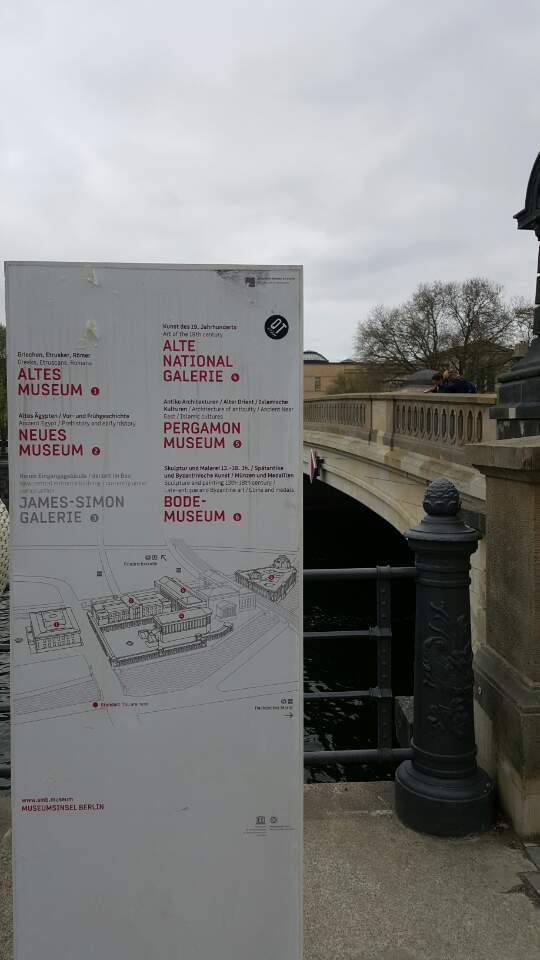 그리고 레스토랑을 나서면 보이는 박물관 섬(Museum Island, Museumsinsel)의 이정표. 독일에서 제일 유명한 5개의 박물관을 모아놓은 곳이다. 월요일에도 문을 여는 베를린 신 박물관(Neues Museum)과, 페르가몬 박물관(Pergamon Museum)에 우선적으로 방문했다.