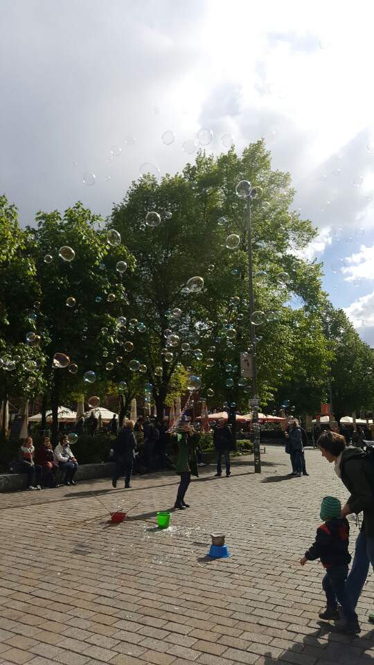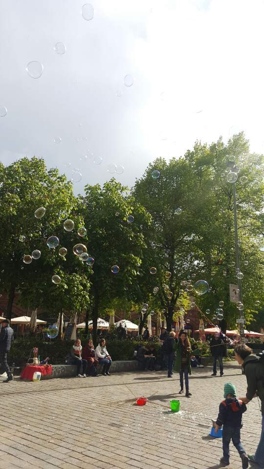 예전에 하케쉐 훼페(Hackesche Hofe)를 여기 하케쉐 마크트(Hackesche Markt) 역이 아닌 미테의 다른 역을 통해 방문했었다. 두 스만에서의 서점 놀이를 마치고 생각보다 일찍 프리드리히샤인으로 돌아가는 길, 왠지 낯익은 역 이름을 보자마자 직감을 믿고 내렸다. (이런 경우는 드물다) 그리고 하케쉐 마크트 광장에서 마주한 비눗방울 퍼포먼스. 참 언제 봐도 마음이 따뜻해지는 풍경. 38살에도, 58살인 엄마도, 98살에도 아마.