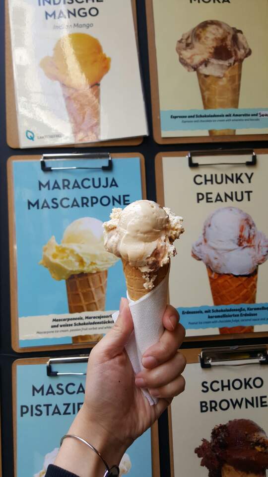 따뜻한 건물에 등을 기대고 '청키 피넛' 맛의 아이스크림을 먹었다. 가만 보니 여기 사람들은 맥주만큼이나 아이스크림을 사랑하는 것 같다. 테라스가 딸린 레스토랑에 앉아 있는 이들의 테이블 위에는 맥주 반, 아이스크림 반. 특히 할아버지와 할머니들이 컵이나 콘을 들고 있는 모습은 또 왜 이렇게 귀여운지. 작은 스푼과 소복한 아이스크림이 눈에 아른거린지 꽤 됐던 터였다. 이유 없이 아이스크림 먹기를 미루고 있던 나를 하케쉐 훼페 입구에 나 있는 아이스크림 집이 붙잡았다.