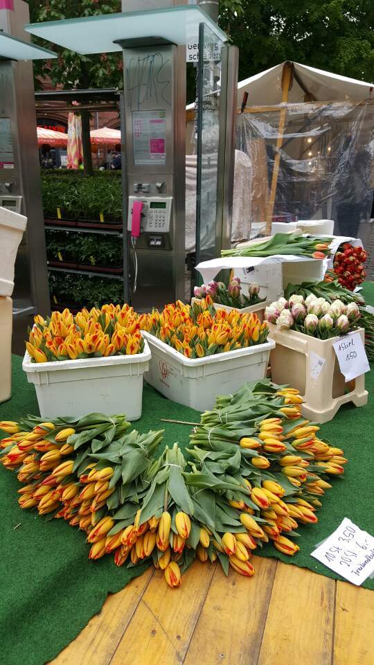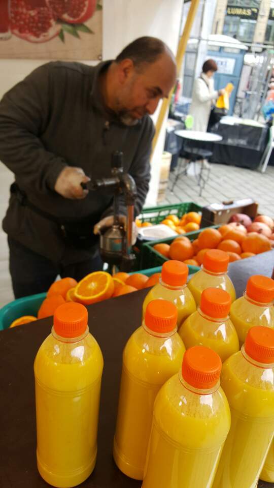 어제는 비를 피하러, 오늘은 내 마음으로부터 달아나기 위해 하케쉐 마크트 역 광장으로 피신을 왔다. 주말의 시작을 알리는 플리마켓이 한창이었다. 시간을 내서 널찍하고 유명한 플리마켓을 찾아가는 것도 좋지만, 아무 역에서나 볼 수 있는 소박한 풍경이 오히려 더 진한 분위기를 품고 있을 때가 있다. 케케묵은 물건들이 뱉는 낡은 숨냄새 대신 싱그럽고 파릇파릇하고 따뜻하고 고소한 냄새가 번지기 때문일까, 진정 쉼이 있는 주말 같은 느낌이다. 오늘은 나도 커피 대신 1유로의 즉석 오렌지 주스로 뒤늦게 하루를 깨웠다.