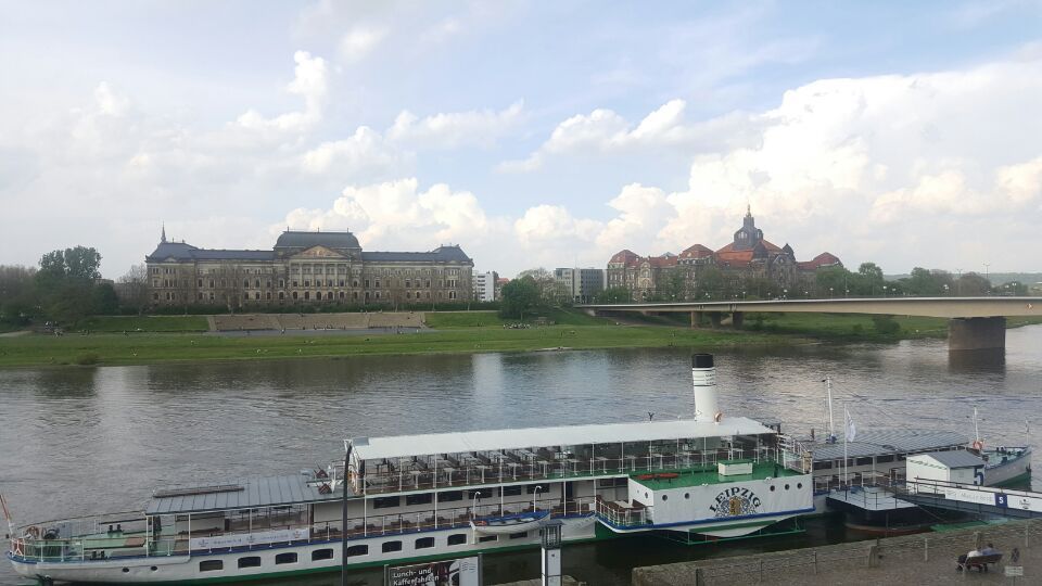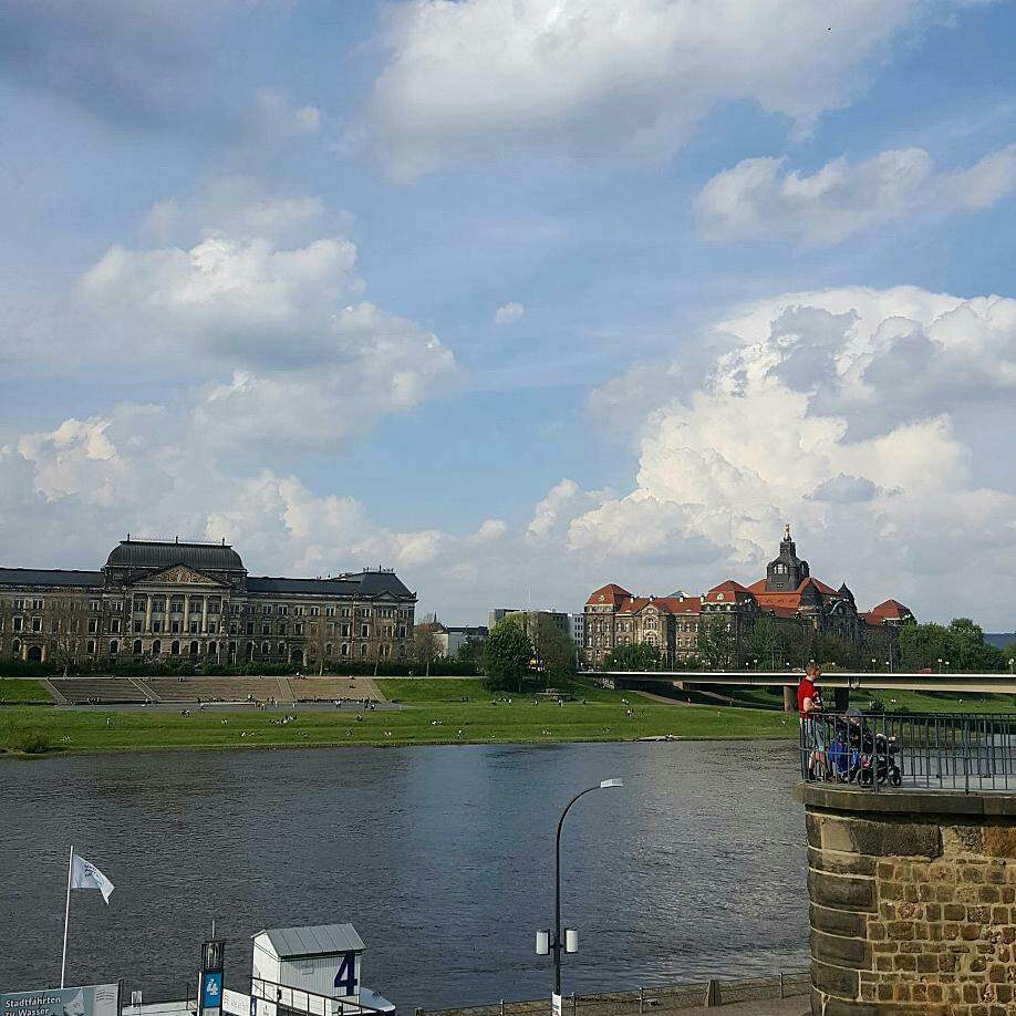 드레스덴 미술대학교(Dresden Academy of Fine Arts) 가는 길. 엘베강은 오늘도 아름답다. 이 천국 같은 하늘 한가운데를 떠다니는 작은 회색빛 먹구름이 너무 귀여워서 자꾸만 웃음이 났다.