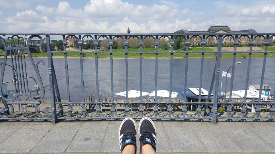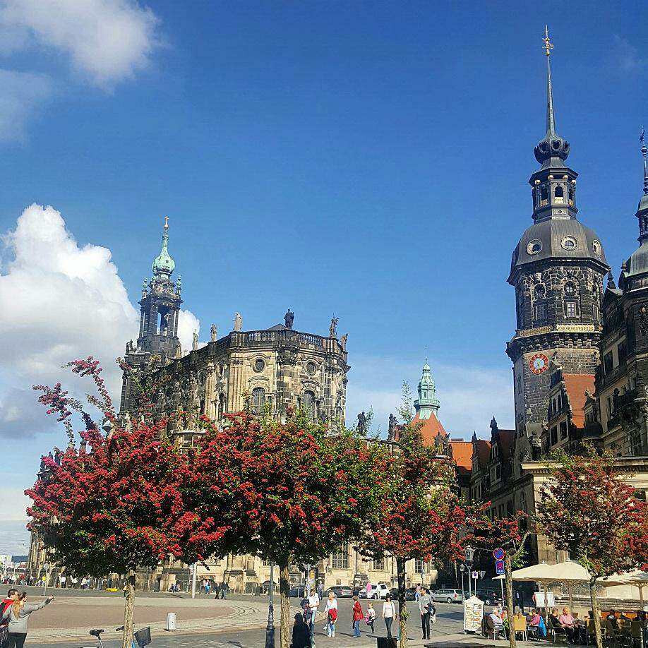 카톨릭 궁정 교회를 등지고선- 유럽의 발코니, 브륄의 테라스(Brühlsche Terrasse)를 향해 성큼성큼