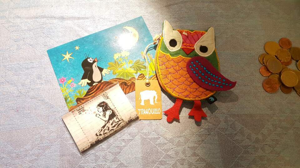 (엽서 속 주인공은 동유럽 캐릭터의 심볼 격이란다) 부엉이 동전지갑은 신시가지에 처음 방문한 기념으로 내게 쥐여준 셀프 선물! 무려 2유로로 파격세일 중이었다. 미소가 나를 날씬하게 해줄 거라는 메시지가 적힌 마그넷은 내 블로그나 인스타그램을 보지 않을 친구를 위한 깜짝 선물!