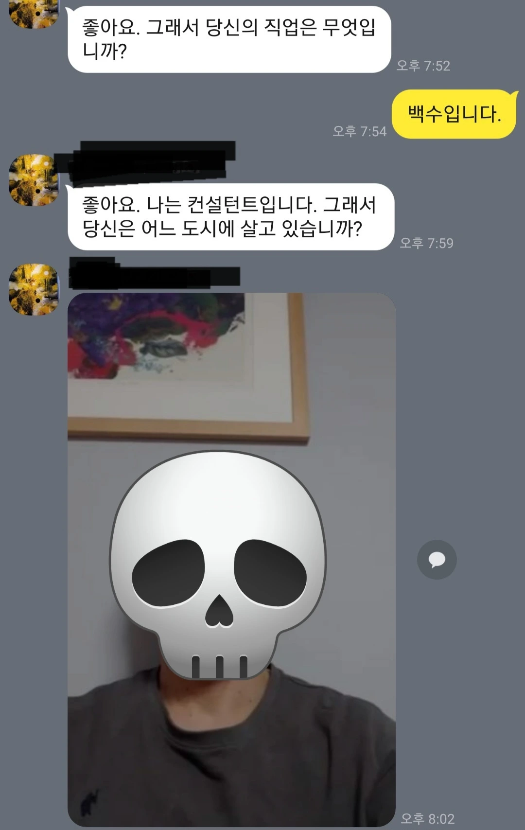 그또한 참았다. 채팅창 삐뽀삐뽀 신고하기 버튼을 살짝궁 눌러주고, 채팅방을 탈출했다.