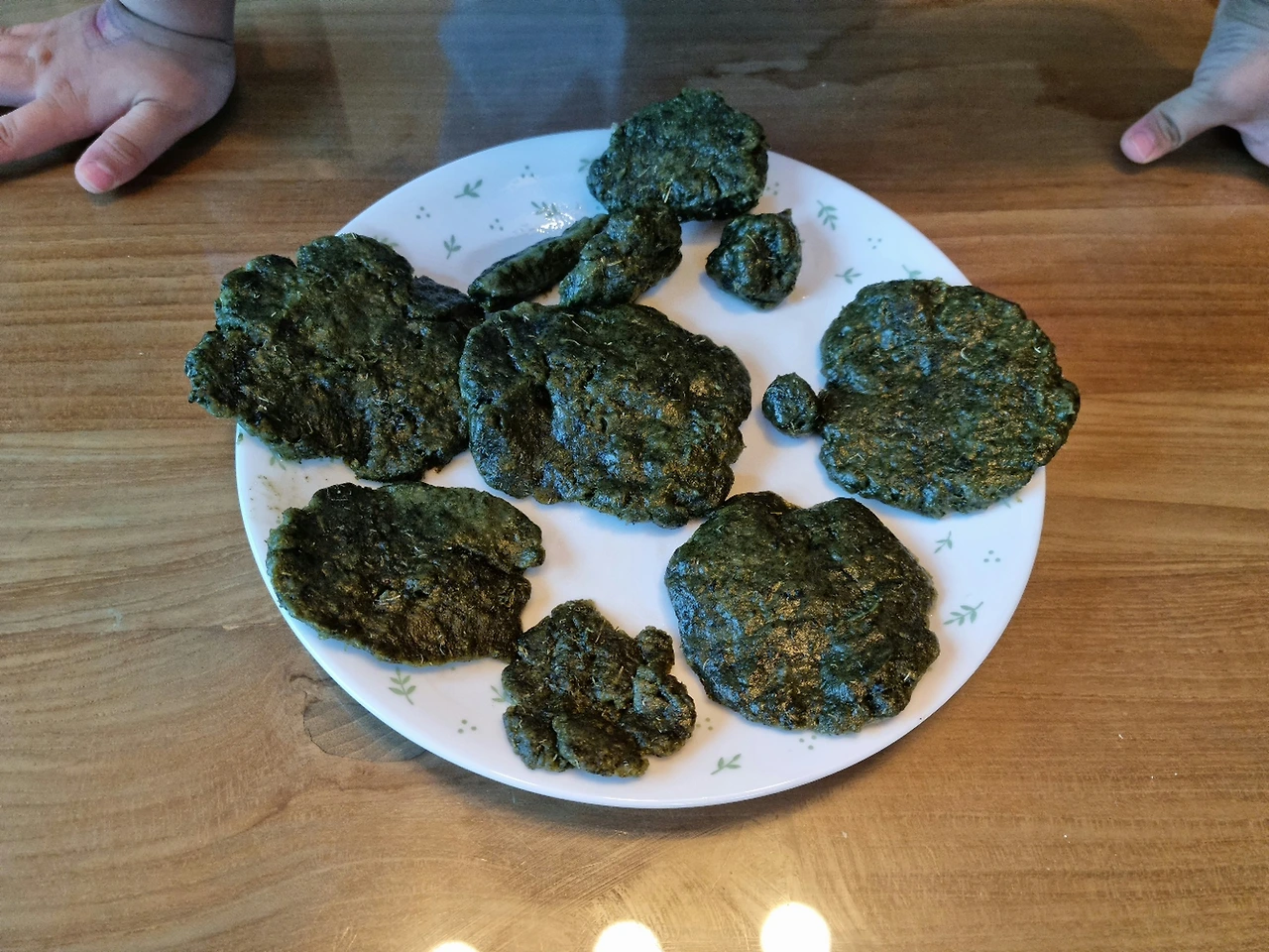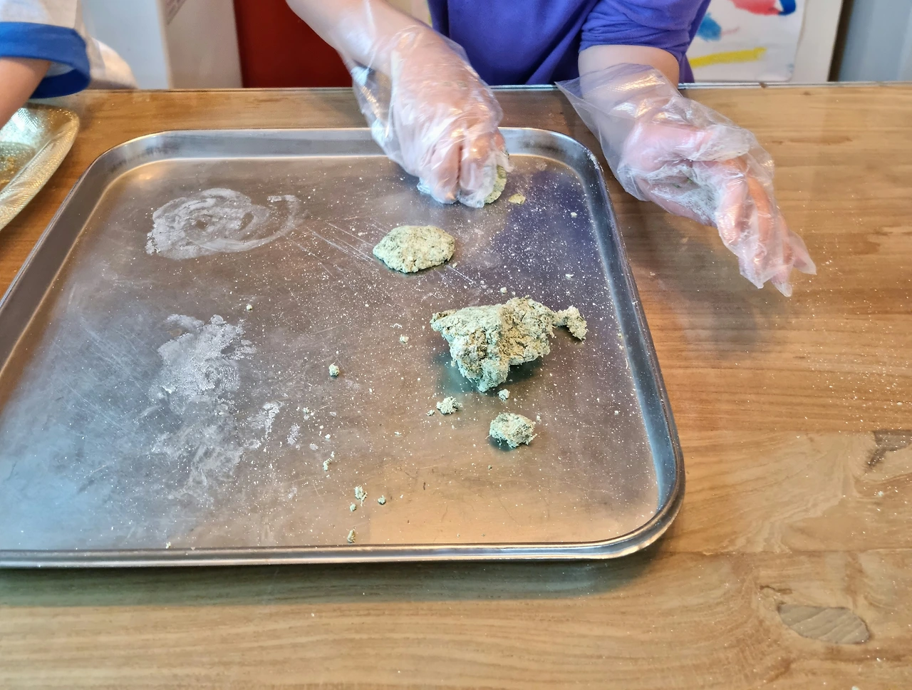 아이들에게 떼어주고 남은 반죽을 뭉치는 게 생각보다 쉽지 않다. 꾹꾹 누르고 뭉치고 굴려서 동글동글 빚었다. 빚은 공을 다시 손바닥에 착착 펼치며 넓적하게 꾹 눌렀다.