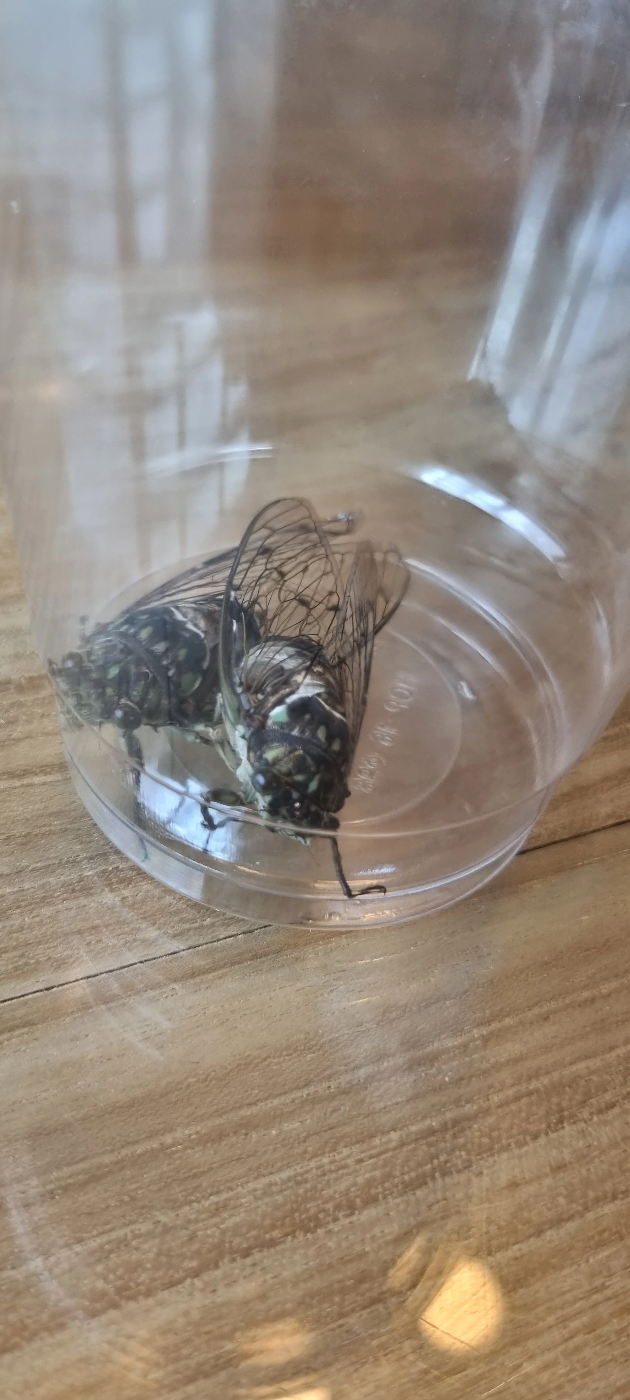 이번엔 두 마리다. 서울 사는 애들한테 이런 거 볼 기회 있겠냐며 데려가라 신다. 커피 컵에 매미 두 마리를 넣어주셨다.