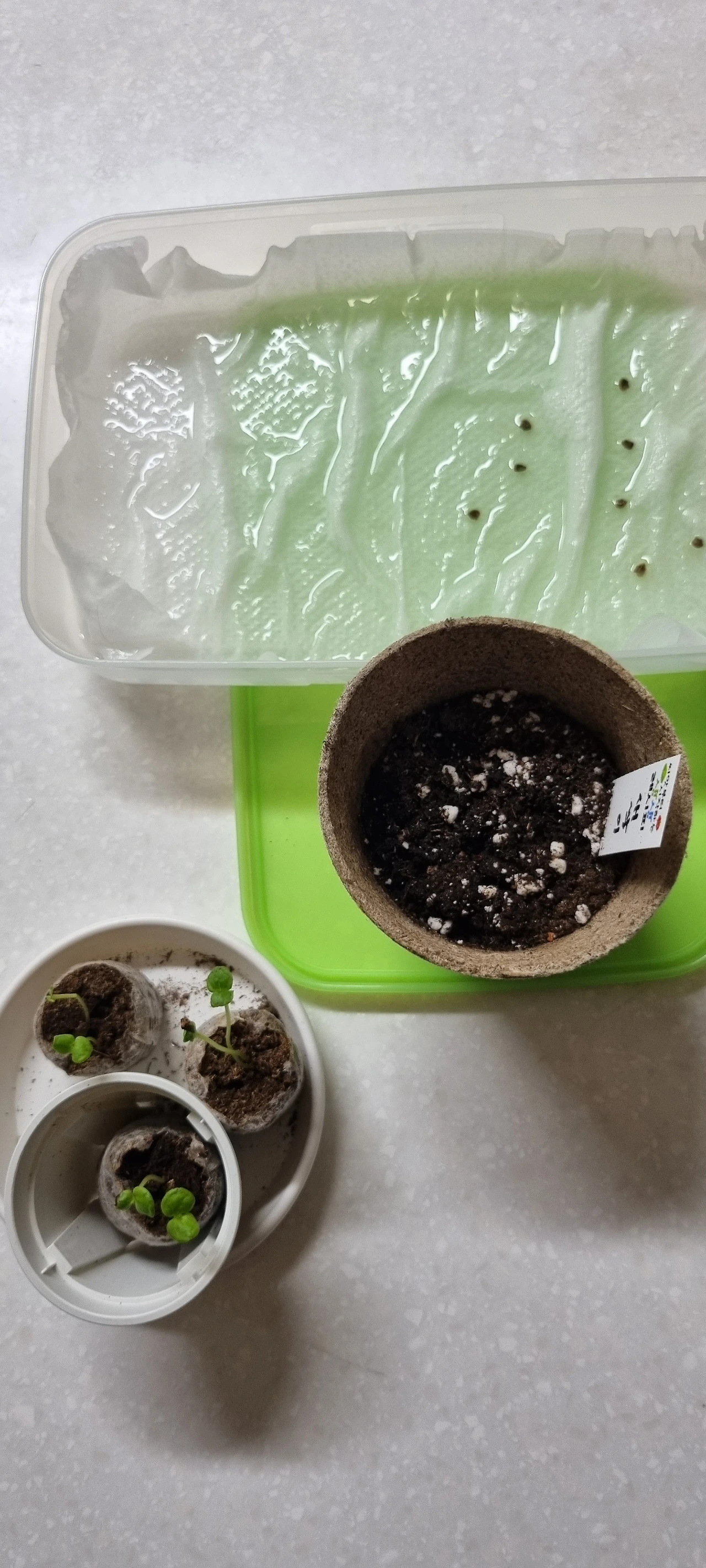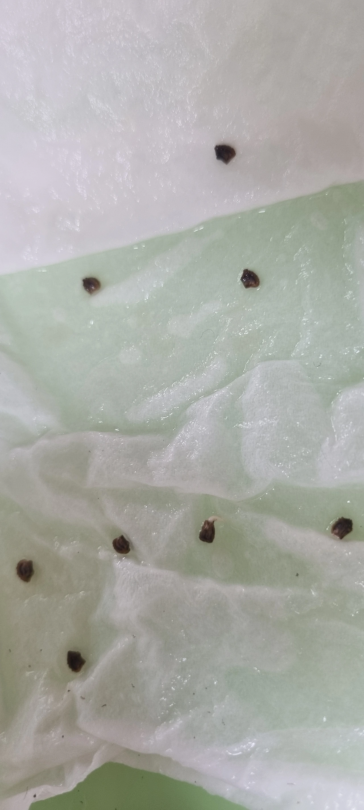 맙소사. 키친타월은 말라있었고, 꼬리가 있던 씨앗 두 개도 말라버렸다.
