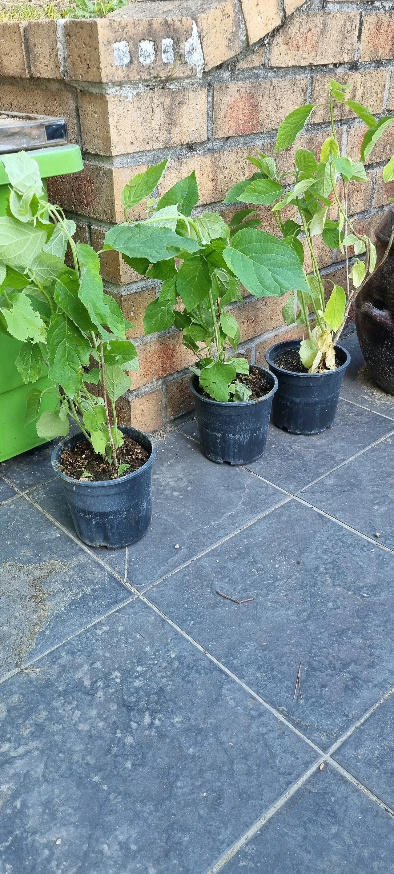 튼튼해 보여서 바로 화단에 옮겨 심었어요. 그러나 저는 무지한 식집사였습니다. 아직 배울게 많아요. 해의 움직임을 생각하지 못하고 아주 양지바른 곳에 심었답니다. 낮에 쨍쨍한 햇빛을 견뎌야 하는 곳이에요. 그늘이 하나도 없답니다.(수국은 그늘에 심는게 좋다고 합니다.)