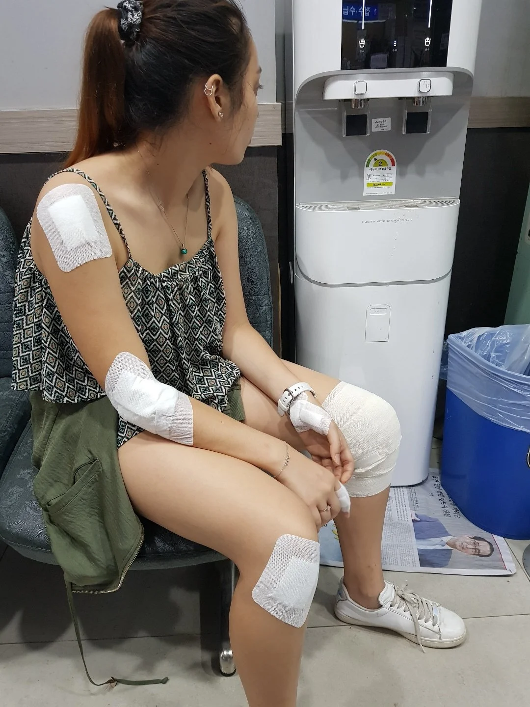 누나 다리도 팔도 바닥에 쓸려서 피가 났어요. 엄마는 반쯤 혼이 빠진 것처럼 놀랐지만 얼른 누나를 부축하고 병원 응급실에 갔지요.