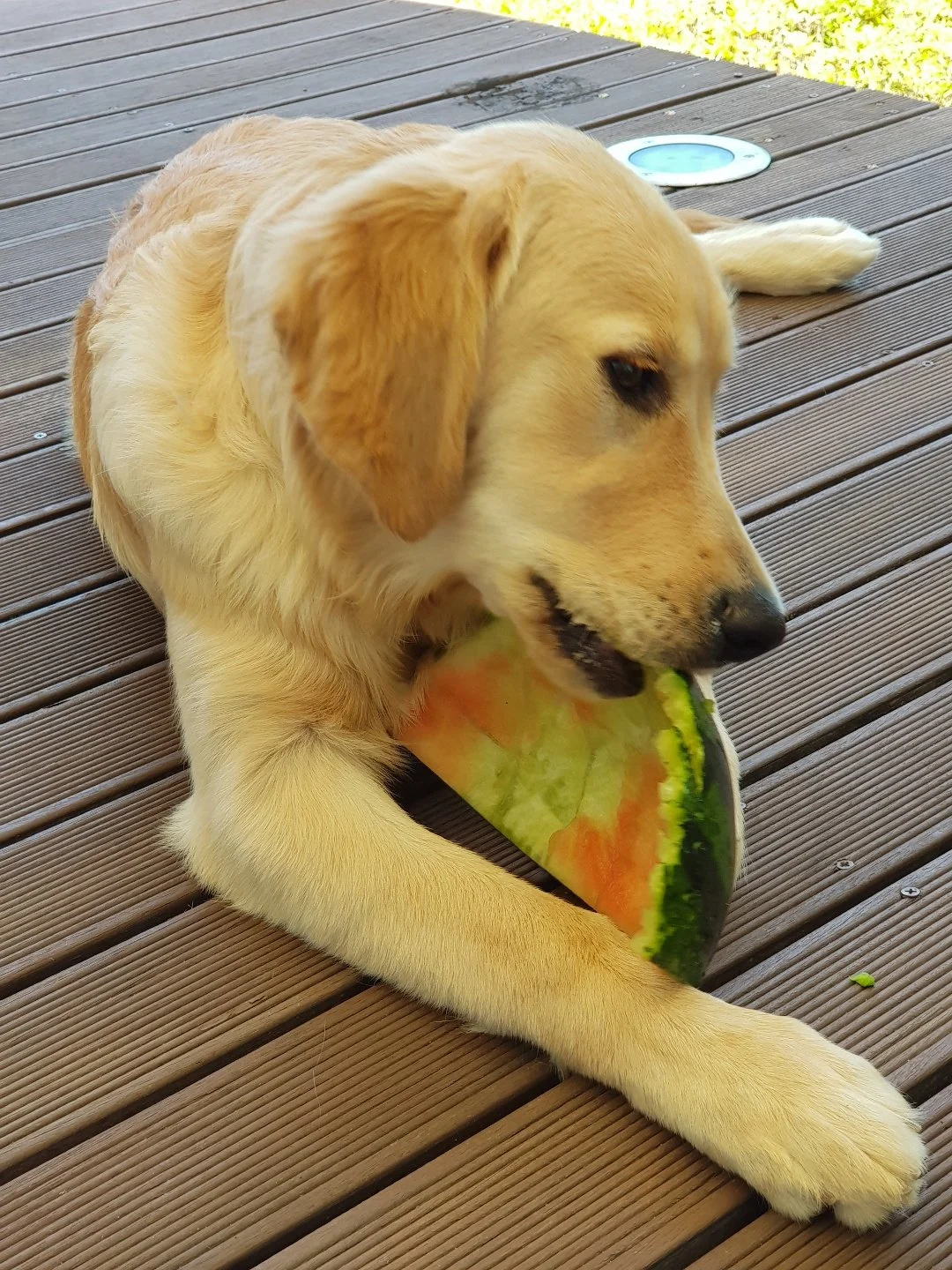 엄마와 누나가 먹는 수박이 너무 맛있어 보였어요. 엄마가 빨간 속살을 조금씩 줬지만 그걸로 성이 안 찼어요. 계속 더 달라고 졸랐지요. 그랬더니 엄마가 세상에 수박을 통째로 주는 거 있죠. 껍데기이긴 했지만 살도 꽤나 많이 붙어 있었답니다. 얼마나 맛있었게요!