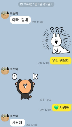 둘째 효준이가 아빠가 야근하는 시간에 맞춰 보낸 메시지입니다.