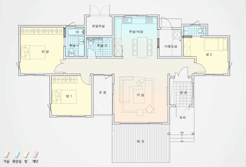 또한 주방과 다용도실을 거실만큼의 공간구성을 하여 주방에서 많이 생활하시는 라이프스타일도 고려하여 설계를 진행하였습니다.