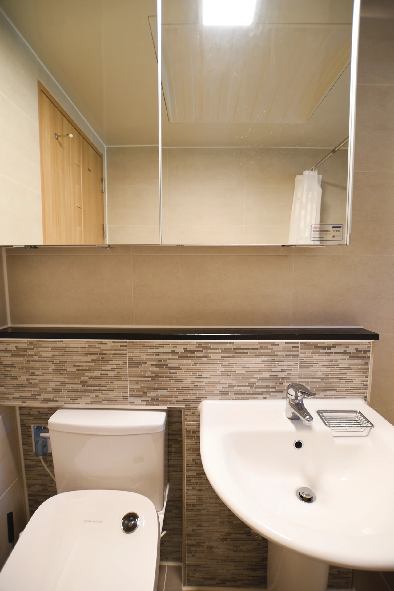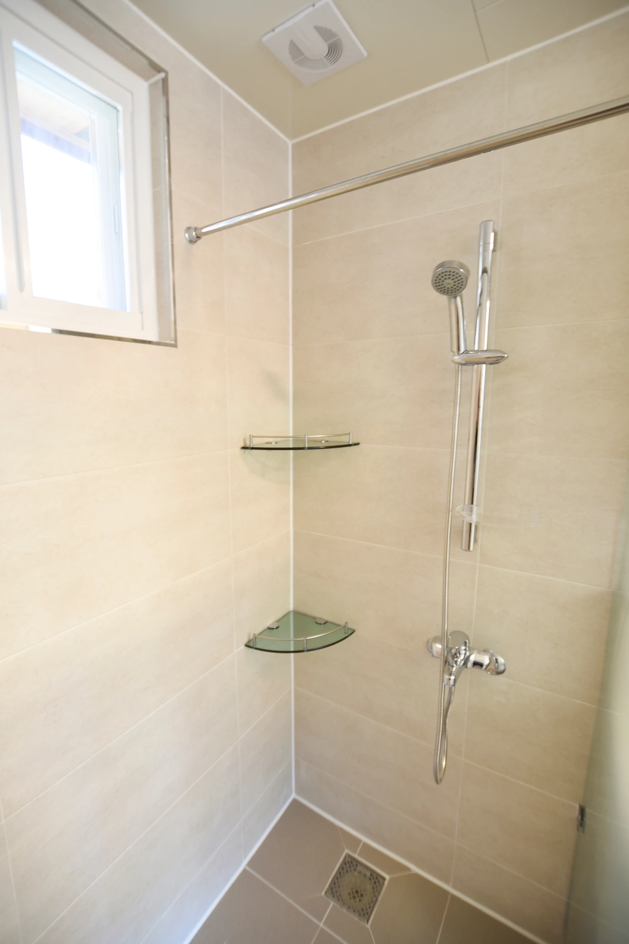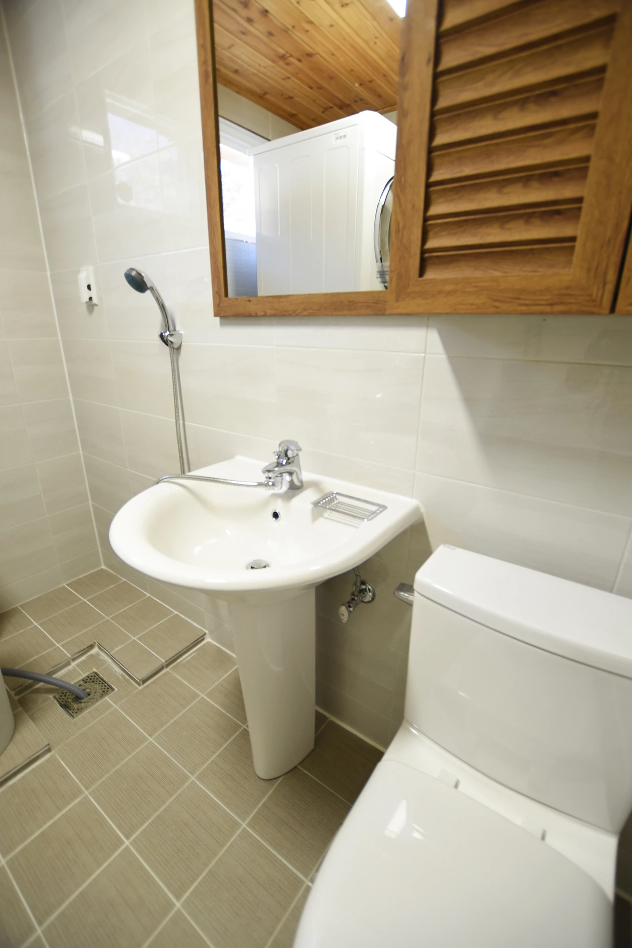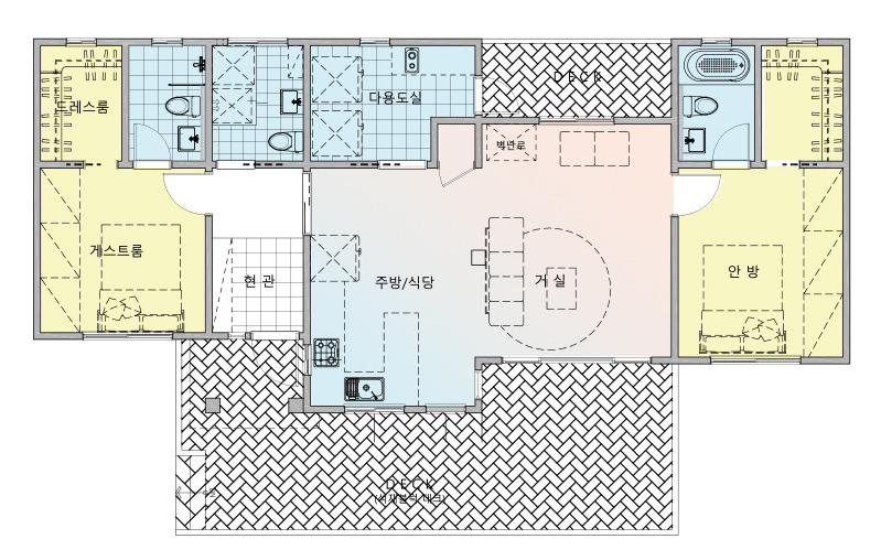 30평대 설계이지만 화장실을 총 3개로 구성하여 손님들이 사용하기 편리하게 공간을 구성하였으며, 좁을 수 있는 내부공간에 대한 제약을 해결하기 위해 앞과 뒤쪽에 데크를 넓게 설치하였습니다.