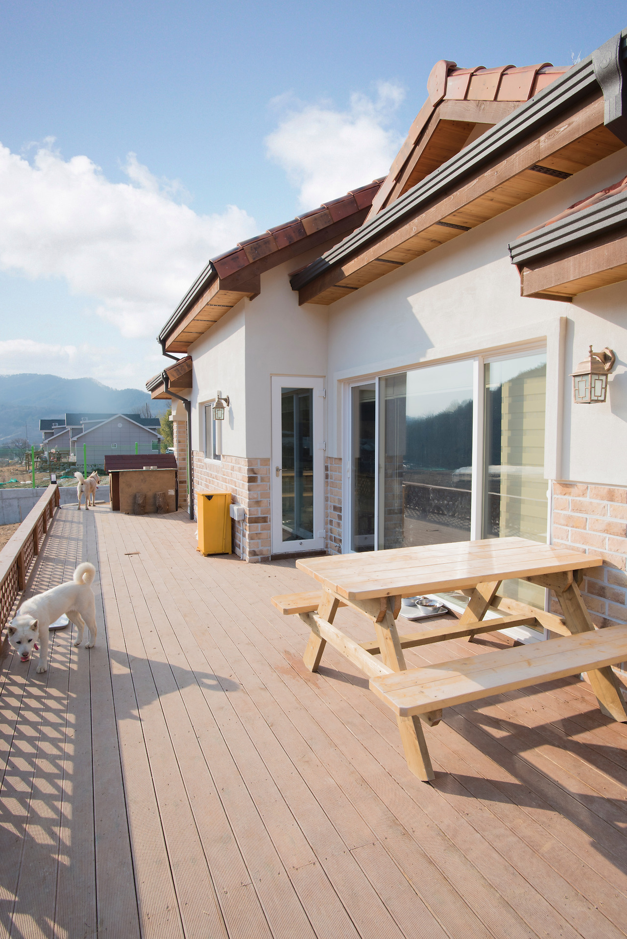 예전에는 단층 전원주택 디자인이 다 비슷비슷했습니다.^^; 그래서 시골스러운 분위기가 더 났었는데 최근에 와서는 저희들같이 젊은 건축가들이 전원주택을 디자인하면서 외형적인 모습들이 세련되어져 가고 있습니다.