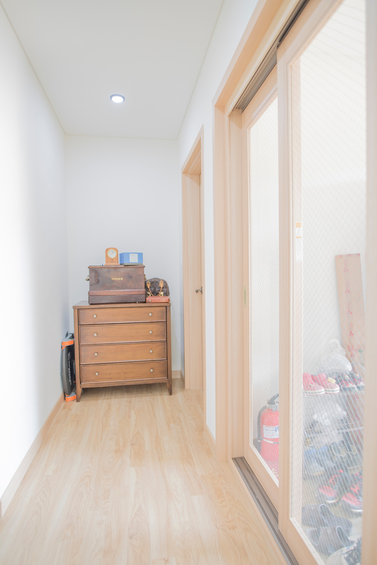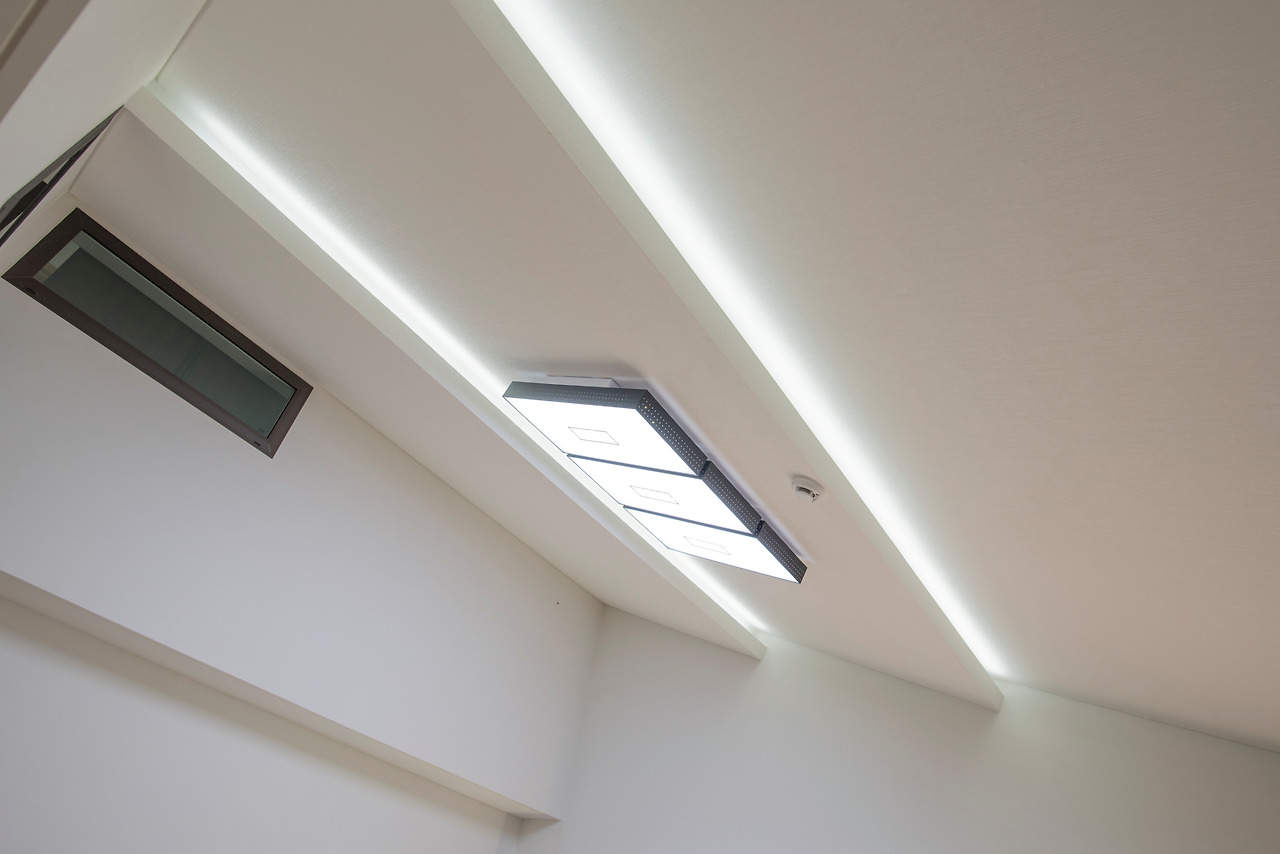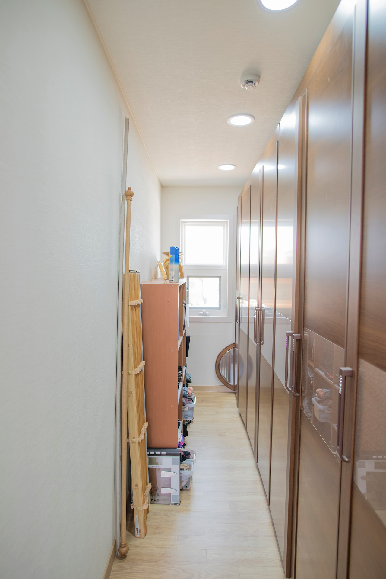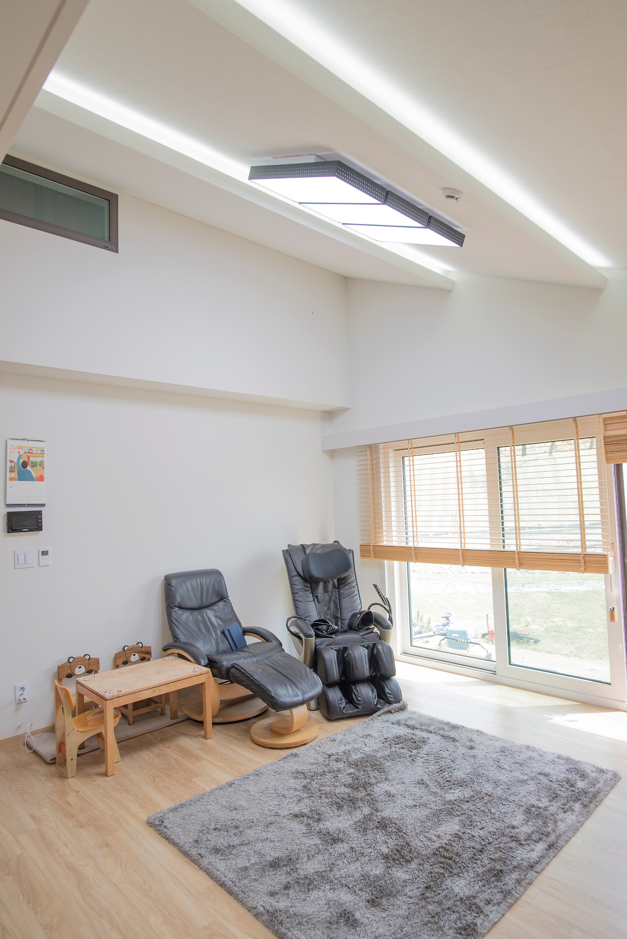 집의 외형이 모던풍이기 때문에 실내에서도 모던한 느낌을 줄 수 있도록 마감선을 심플하게 정돈하였으며, 조명등도 매립등이나 박스형의 조명을 설치하여 모던적인 느낌을 유지시킬 수 있도록 하였습니다.
